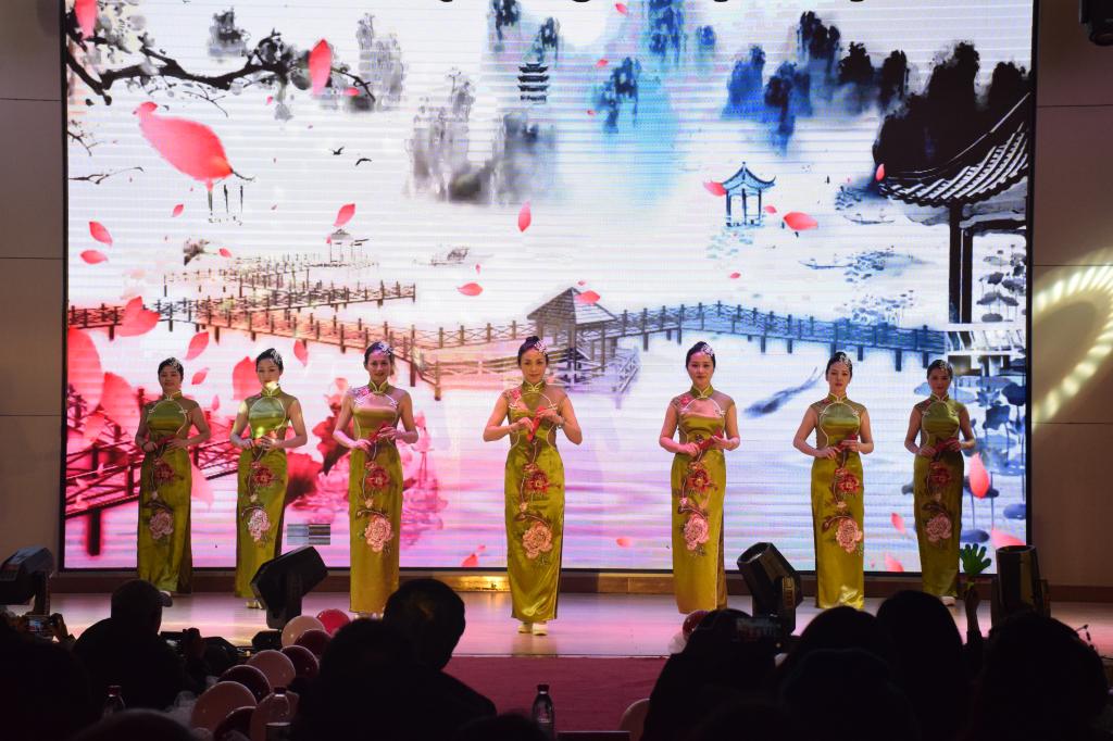 周健老师携手万州旗袍协会带来的东方旗袍“T台秀”节目登场,她们的一颦一笑,顾盼生姿,令人难忘,一场充满东方韵味的艺术盛宴让人大饱眼福!最后,本次新年晚会在部门负责人歌曲大合唱中完美的落下帷幕。