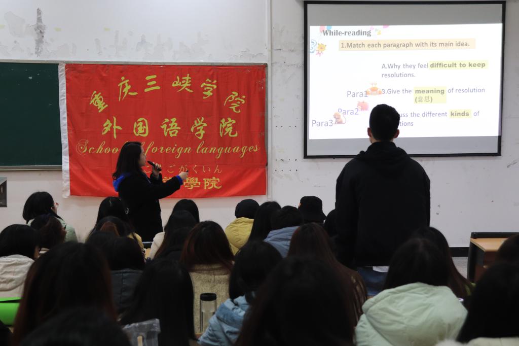 为进一步丰富英语师范专业同学的教学经验,提升师范专业技能,12月24日14:00,我院在明辨楼2栋101教室举办了高中英语优质程展示观摩活动。万州外国语学校英语老师、我院2016级硕士研究生魏晓豪应邀担任此次讲座主讲人,必赢242网址副院长许楠博士、必赢242网址学工办主任杨华老师参加此次讲座。2018级全体英语师范专业170余名学生到场聆听。
