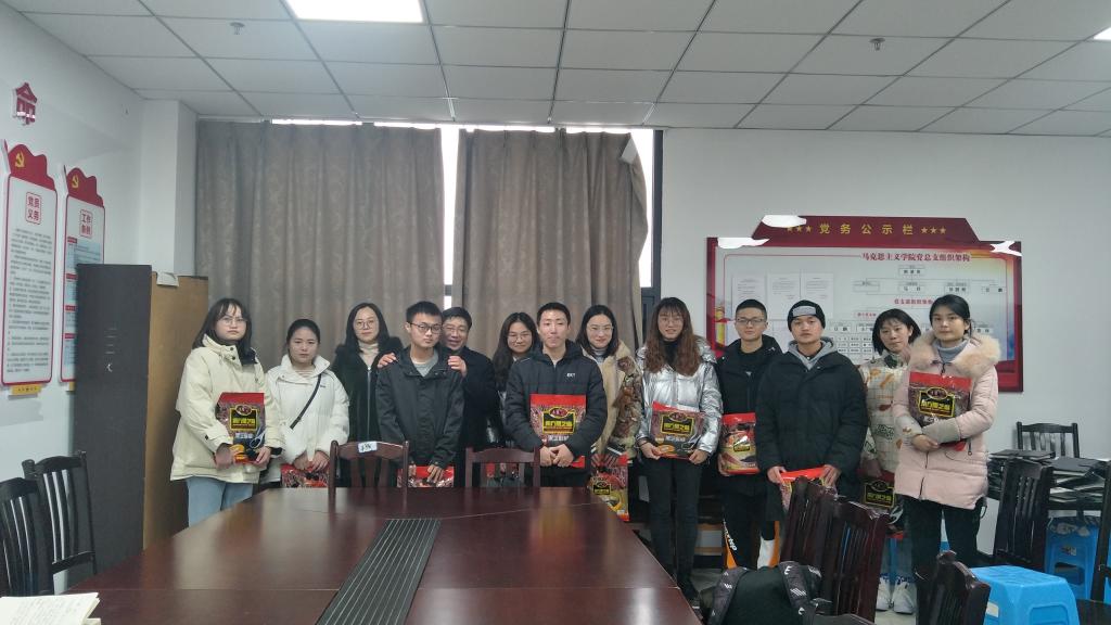党总支副书记黄琰希望同学们用实际行动去传播爱与温暖,并对元旦节期间的安全事项进行了强调。参加会议的部分学生代表进行了发言,感谢学院领导及老师的关心。最后,学院领导和老师代表学院为每一位在场的学生发放了元旦节慰问品并合影留念。