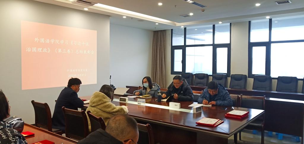 2020年12月31日,学院在科技楼801召开学习《习近平谈治国理政》(第三卷)总结表彰会。学院党政班子成员、总支委员、支委委员、获奖教师党员等参加了会议。会议由学院党总支副书记黄琰主持。