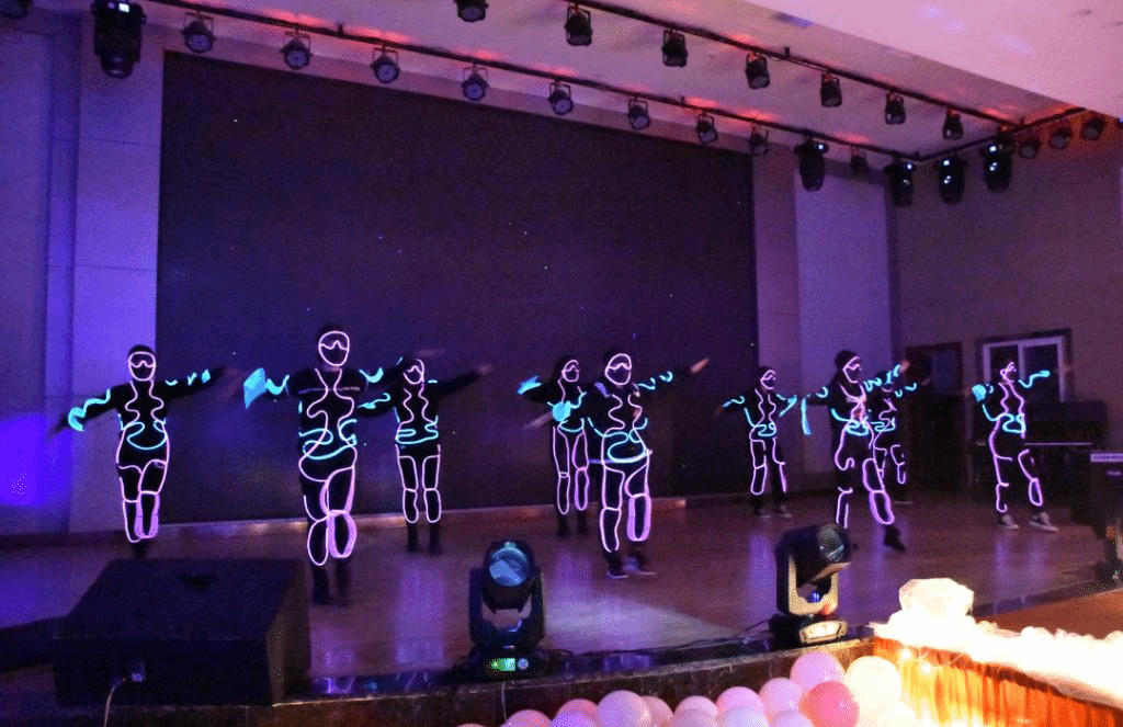 鼓乐齐鸣,必赢242网址花鼓队的特色演出拉开了本次晚会的序幕,清脆的鼓声,点燃外院学子的青春热情;充满创意的荧光舞《暗夜精灵》,舞动的身影、跳跃的光线,为观众们带来一场视觉盛宴。
