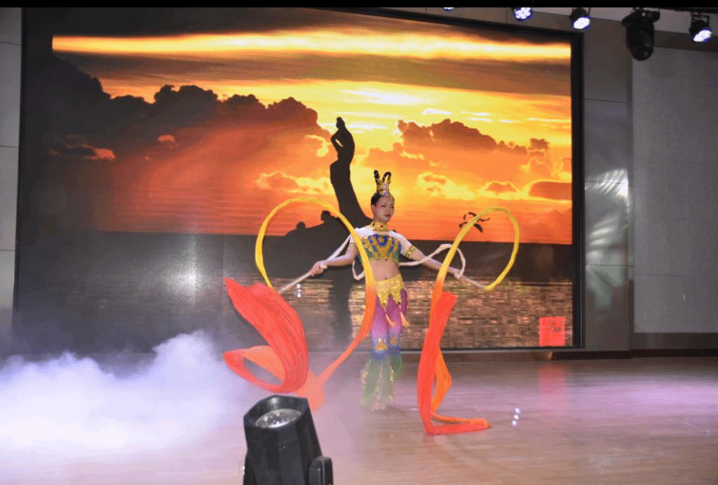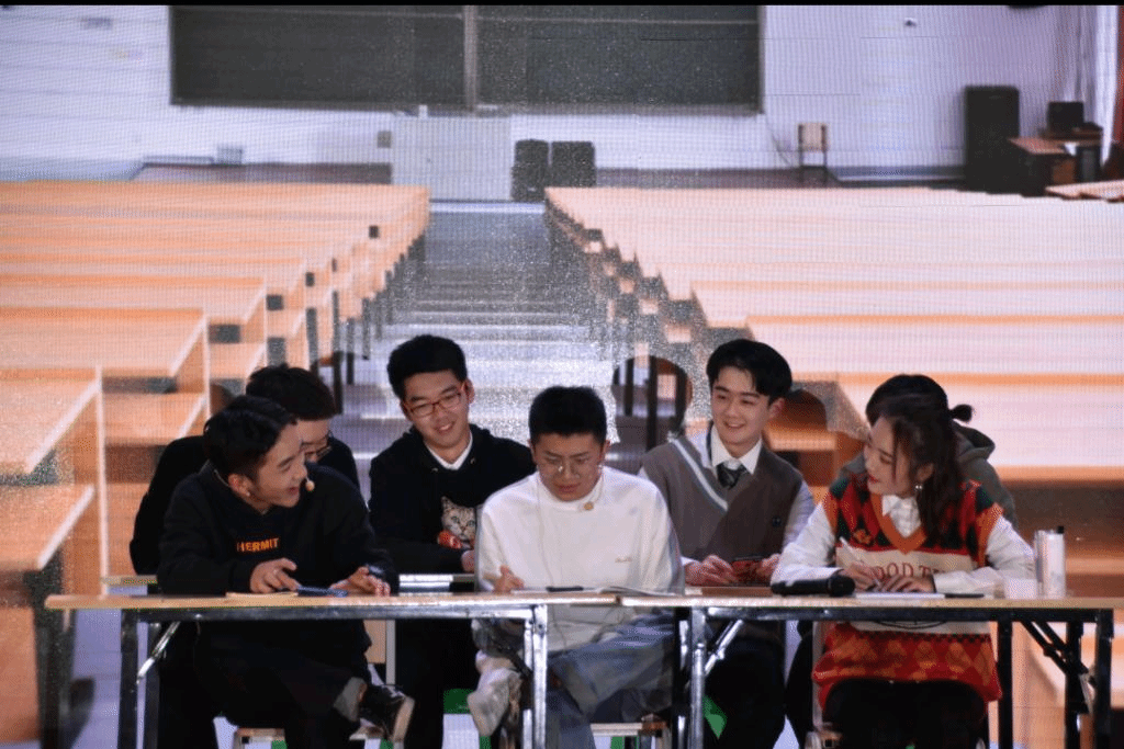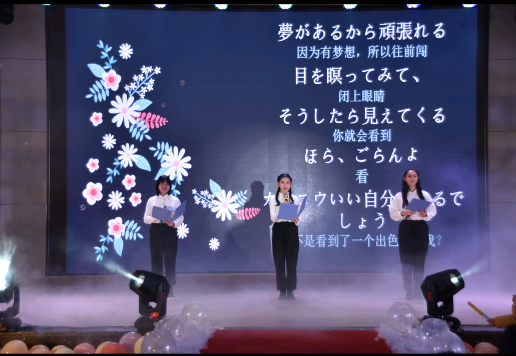 精彩不断,逐梦在航。“我们都是追梦人,在今天勇敢向未来报道……”苏公志、高金轩等四位团学部长带领现场同学为梦想高歌;19级同学李佳壕带来优雅典丽的民族舞《飞天》,捻指垂暮的步态生莲,配以乘风起舞的飞天长绸,惊艳全场观众;反映警惕防范大学生网贷、沉迷打游戏现象、端正学习态度等校园生活为主题的小品、相声,幽默诙谐,在逗得全场观众捧腹大笑的同时,极具教育意义,引发同学们的深思;英语短剧《My Fair Lady》、日语朗诵展现外院学子极强的外语综合运用能力;此外更有二胡独奏经典曲目《赛马》、笛子独奏、吉他合奏等器乐表演纷繁精彩的现场演绎。晚会在全体团学干部合唱《我和我的祖国》的歌声中走向尾声,红旗飘飘,外院学子挥动的是手中如火般的红帜,坚定的是心中对青春未来的无尽期望。