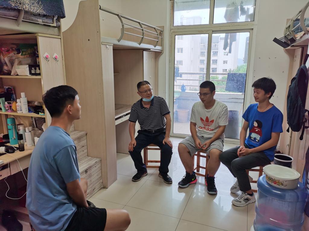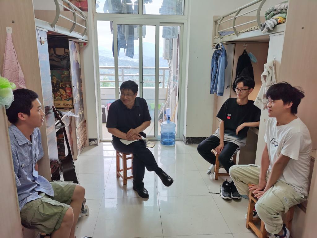 随后,甘长银书记、刘晓林院长分别来到所联系的学生寝室,与同学们开展深入地交流,全面了解学生思想动态,引领学生成长成才。在会谈中,甘书记、刘院长亲切询问了寝室每位同学的学习及生活状况,详细了解同学们在生活中遇到的困难;结合学生所学专业提出建议,鼓励大家要好好读书,在关键时期做好人生规划;珍惜大学时光,积极参与实践,勇于担当作为,把个人理想与社会需求相结合。