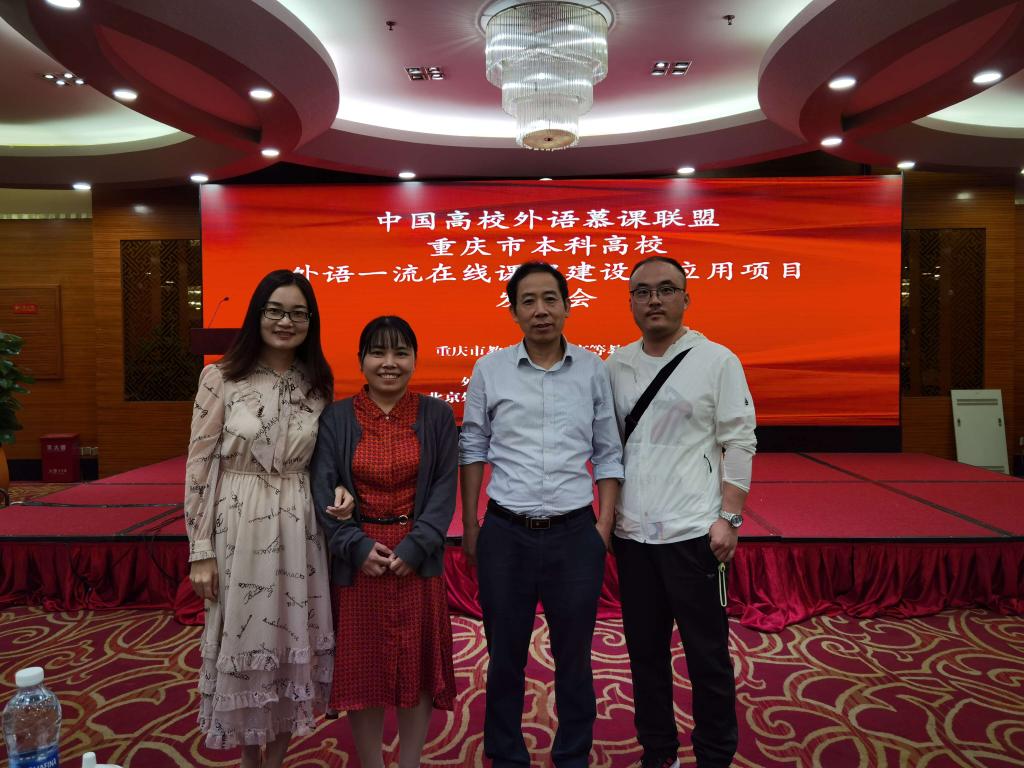 时维九月,序属仲秋,丹桂飘香,秋水依依。24日下午,2020年中国高校外语慕课联盟“重庆市本科高校外语一流在线课程建设与应用项目”发布会在重庆君豪大饭店金濠源厅隆重召开。我院副院长唐淑华教授一行四人和教务处廖红富同志参加了会议,会议由重庆市教育委员会、四川外国语大学以及外语教学与研究出版社主办。