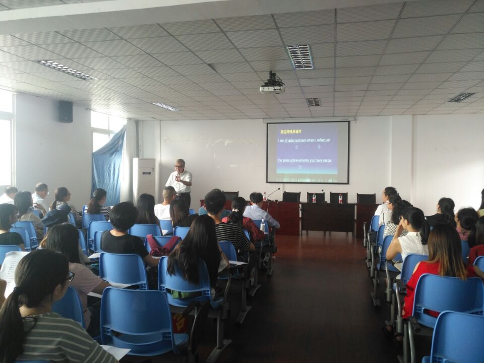 王寅教授围绕“英语词汇认知学习方法”,主要从“语言教学层面上的英汉对比研究”及“科研层面上的英汉对比研究”两方面阐述英汉语言的区别:主谓形合与意合、剪辑与临摹、葡萄与竹竿、浓缩与展开等。讲座深入浅出,引经据典,语言幽默,让师生们收获颇丰。