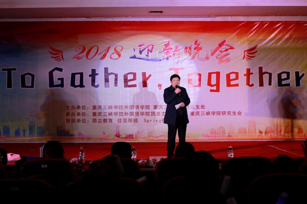 晚会开始,党总支书记甘长银教授上台为晚会致词,他首先欢迎新生们的到来,并借用哈佛大学教授的“幸福取决于你有意识的思维方式”,对新生们提出了希望,强调大家应培养创新和批判性思维方式,通过自己的努力创造美好的未来。