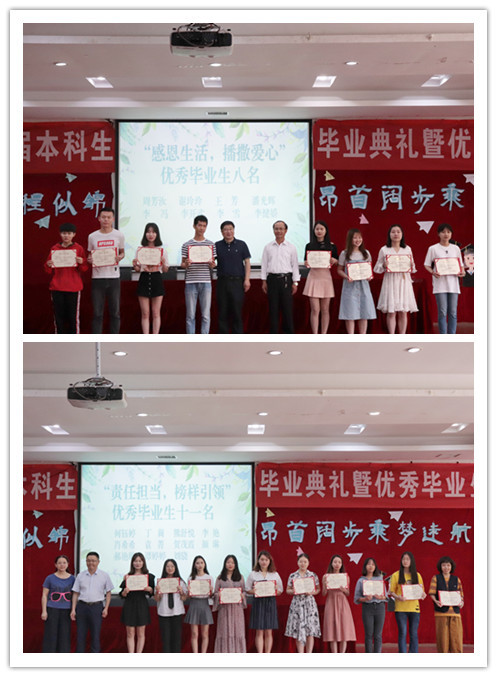 唐淑华副院长宣读了我院2019年优秀大学毕业生表彰文件,许楠副院长通报了2019届毕业生考研情况,并向获得表彰奖励及升研同学们表达了热烈的祝贺。学院党政领导为受表彰毕业生颁发了荣誉证书,并向全体毕业生赠送了毕业纪念品。