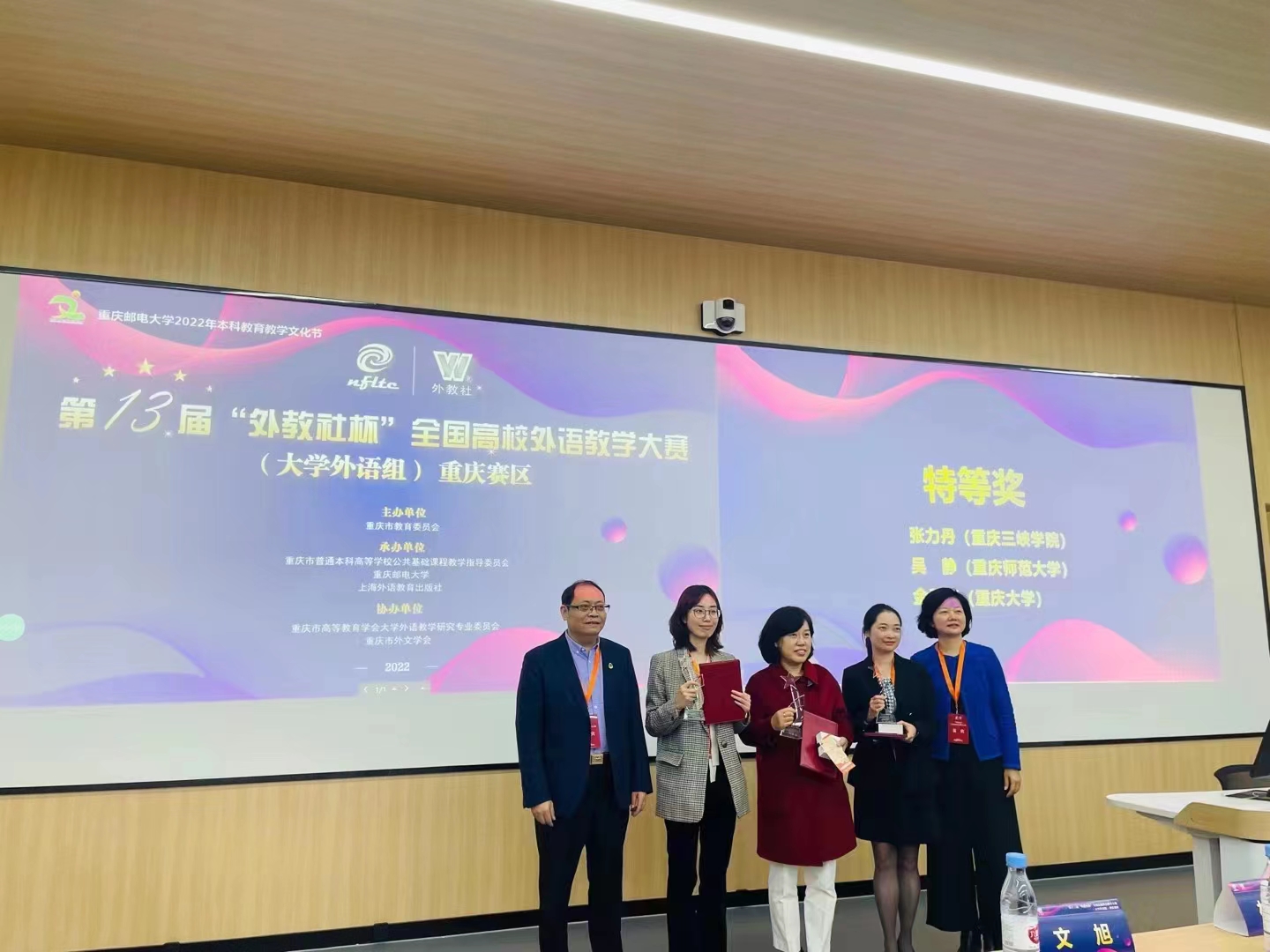经过激烈角逐,我院教师张力丹荣获大学英语视听说组特等奖,将代表重庆高校参加该组别的全国决赛。王平教师团队和杨红教师分别获得大学英语综合组和日语组二等奖。
