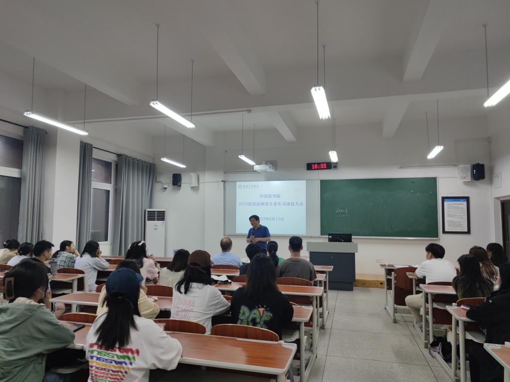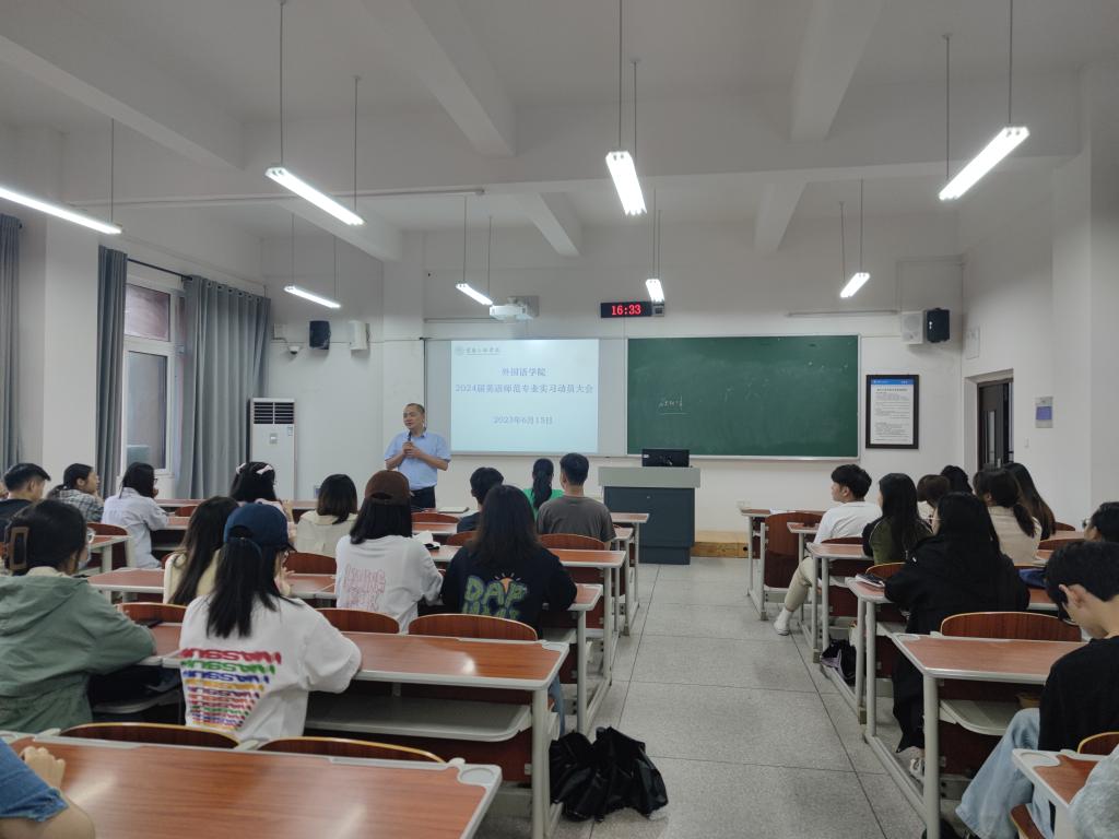 为扎实做好2024届毕业生实习工作,进一步促进学生对所学知识和技能的实践运用、总结和深化,引导学生明确实习的目的和意义,6月15日下午学院在博学楼2栋302召开了实习动员大会。学院党总支书记甘长银、副院长孔云军、教务办主任粟晏、辅导员李健以及2024届全体师范生参加会议。