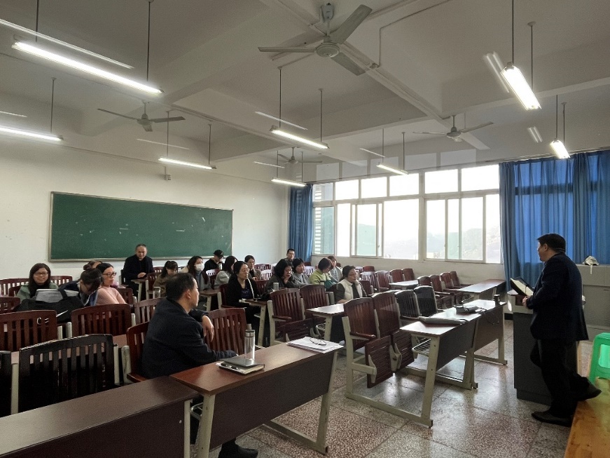 3月21日下午,大学英语教研部根据学院对党委巡察反馈问题整改方案的要求就如何“更加合理安排教学任务”,“如何提升青年教师科研能力”等方面进行了探讨,围绕“深化大学英语改革”的主题进行了充分讨论。学院党总支书记甘长银和分管教学院长唐淑华莅临,会议由教研部胡平主任主持。系部总结了大学英语前期成果,教师们对后续改革如何推进畅所欲言。甘长银和唐淑华仔细聆听了老师们的意见和建议,党总支书记甘长银对大学英语改革所取得的成绩做出了肯定,也对后续深化改革做出了指导。