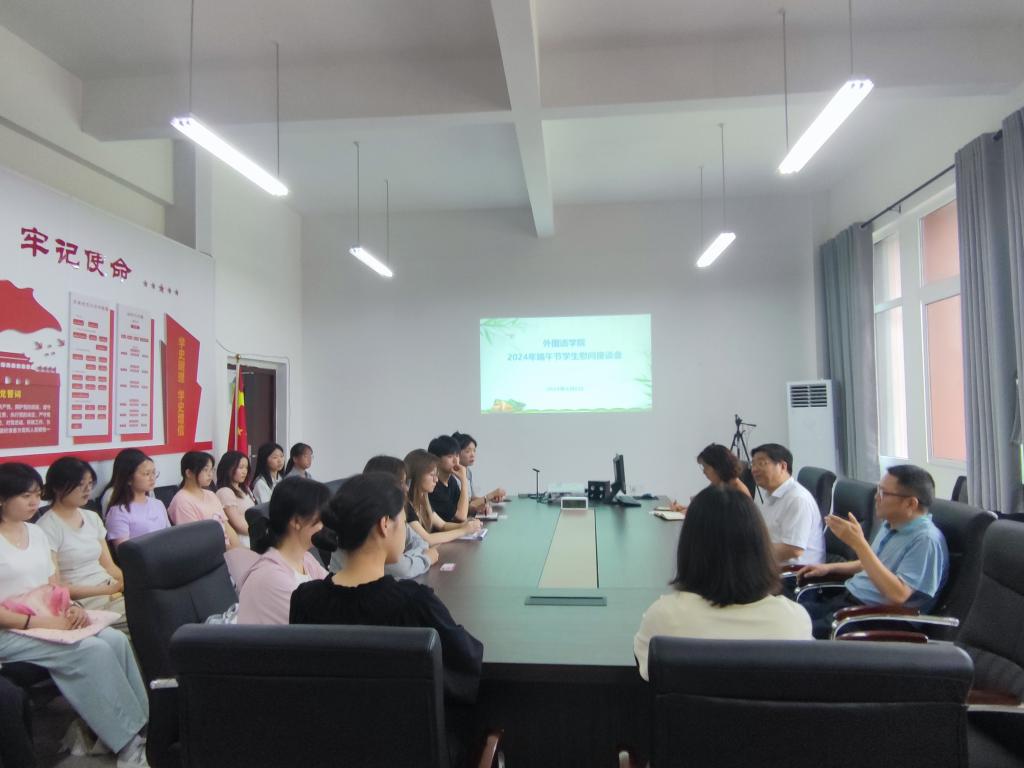 在端午节即将来临之际,为进一步弘扬中华民族优秀传统文化,关心学生的健康成长和发展,6月6日下午,必赢242网址在博学楼3栋315会议室召开了2024年端午节学生慰问座谈会。学院党总支书记甘长银、院长刘晓林、全体辅导员及学生代表参加座谈会。