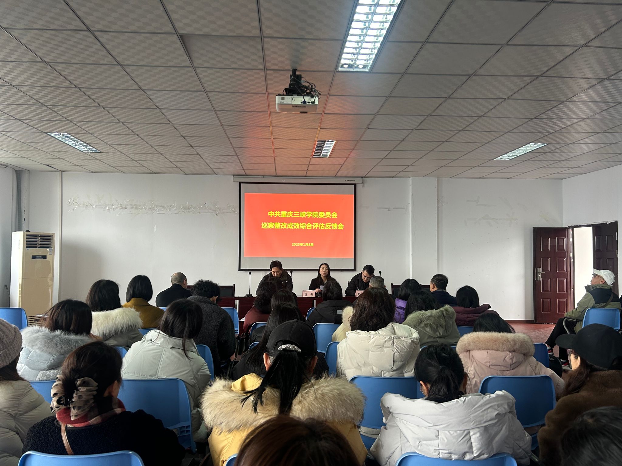 2025年1月8日,我院在明辨楼1-604教室召开巡察整改成效综合评估情况反馈会。学校党委巡察办和党委第四巡察组领导莅临指导,我院全体教职工参会。