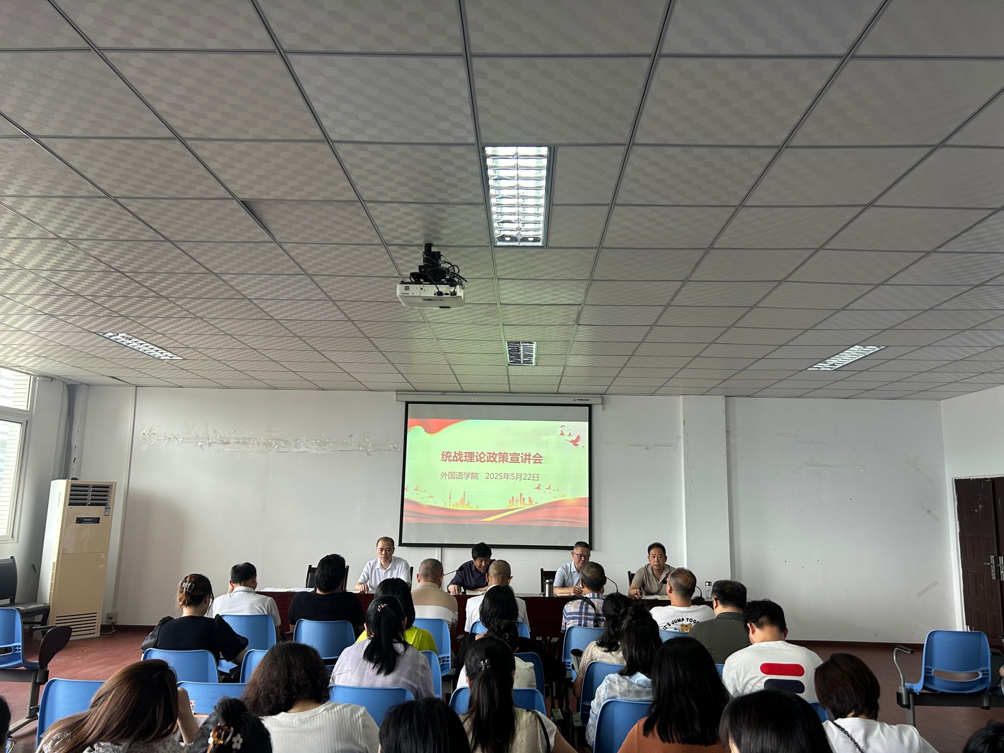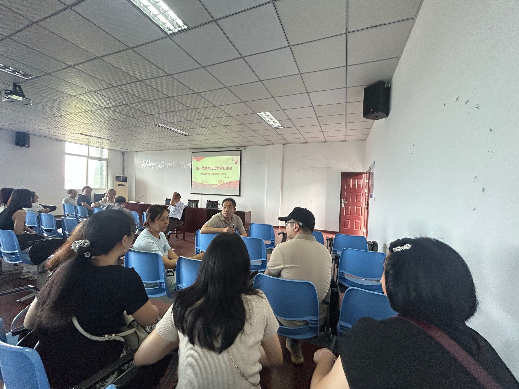 为深入学习贯彻党的统战理论政策,深入了解党外知识分子思想动态,进一步增强学院凝聚力与向心力, 2025年5月22日,必赢242网址在明辨1教604教室召开统战理论政策宣讲会,并开展了“大走访、大谈心”活动。此次会议由学院党总支书记甘长银主持,必赢242网址全体教师参加。