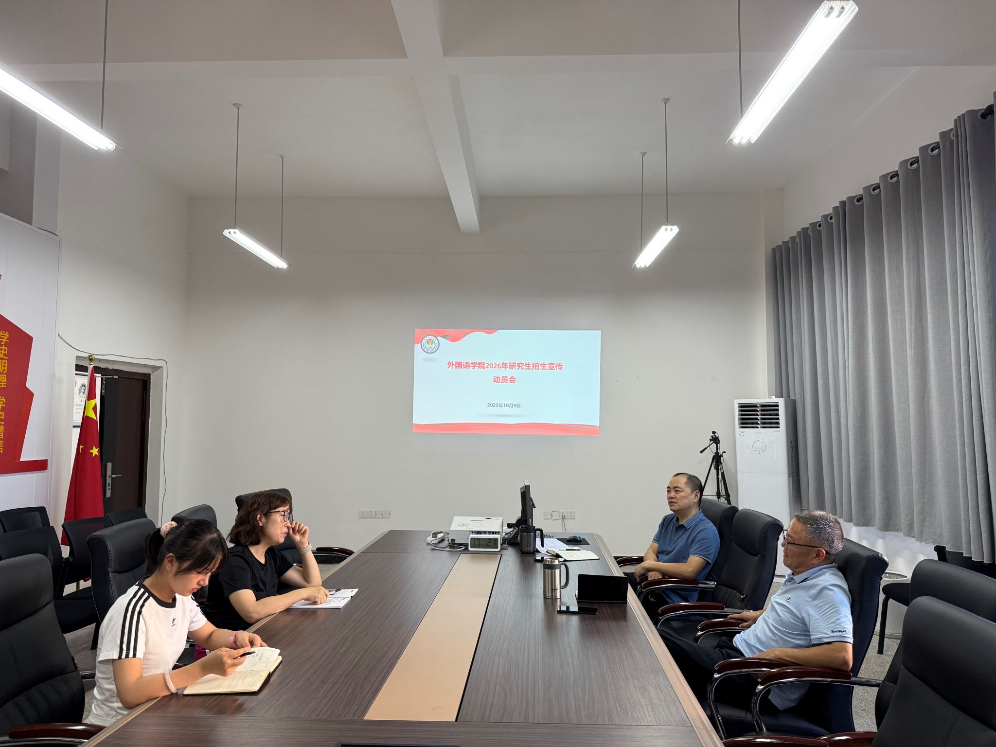 会议首先传达并学习了上级部门关于研究生招生工作的最新会议精神与要求。随后,与会人员围绕宣传对象、宣传方式、宣传内容几个方面进行了深入研讨和动员部署。