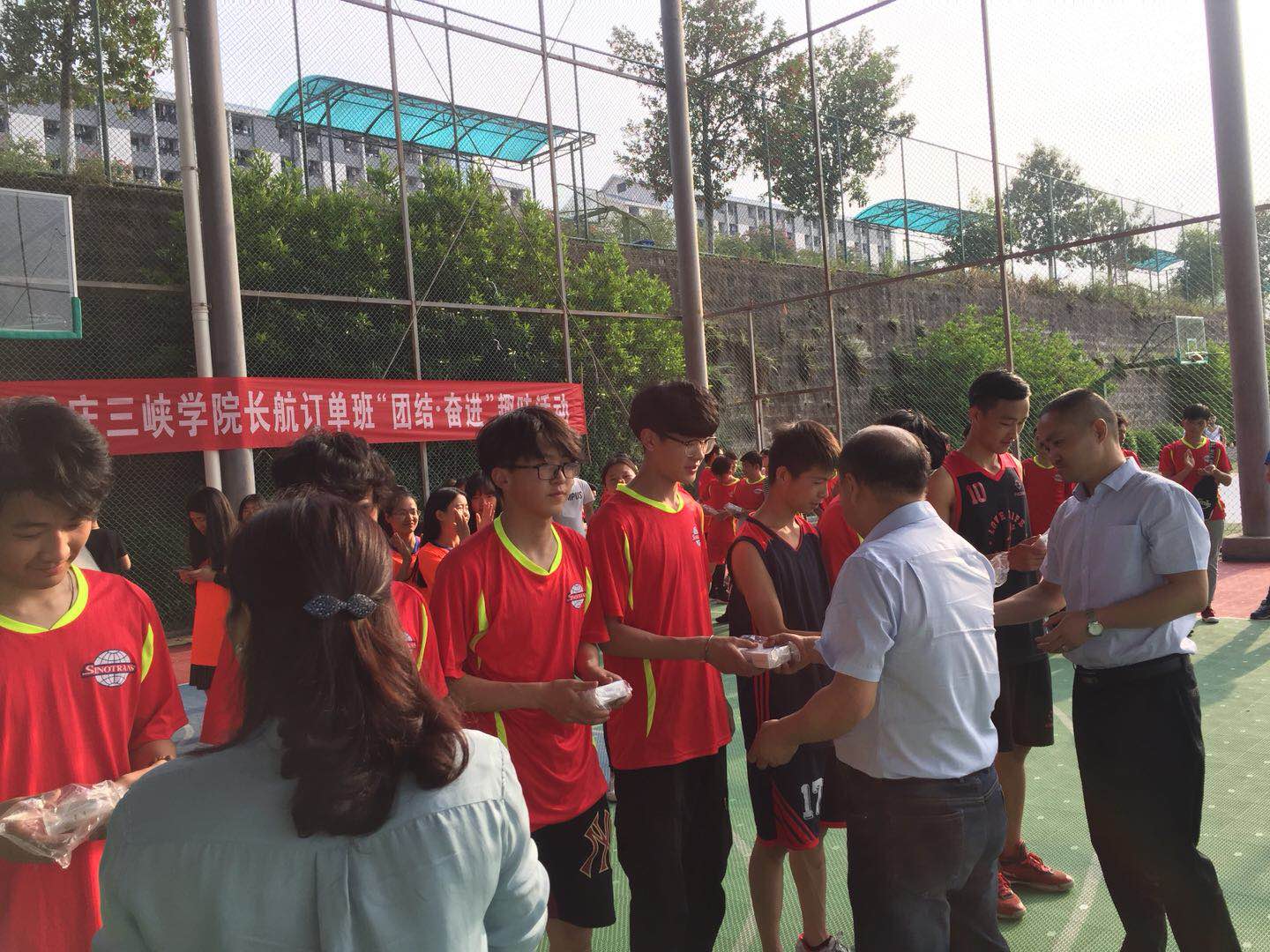 本次趣味活动旨在丰富同学们的业余生活,增进团体之间的友谊,增强长航班班级凝聚力。活动主要由拔河、篮球和趣味接力三个项目组成,主要考察了同学们的团队协作能力。拔河比赛中,在裁判的一声哨响下,双方参赛人员都展现出十足的干劲,未参赛的同学们站在一旁为他们加油打气,场面一度十分激烈;而在接下来的篮球比赛中,选手们凭借团队合作和精湛的球技为大家带来了一场精彩的视觉盛宴;最后的趣味接力中,每组选手使出浑身解数,体能与脑力并用,出色地完成了团队合作。同学们挥洒热情,展现活力,篮球场里充满了蓬勃的朝气。