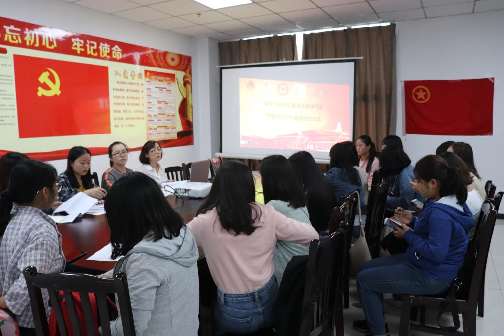 2018年5月10日下午三点,必赢242网址团总支在综合楼411会议室举行242nte官网第五次团学代会必赢242网址代表团出征仪式。我院党总支副书记黄琰、团总支书记杨华及全体代表参加此次会议。