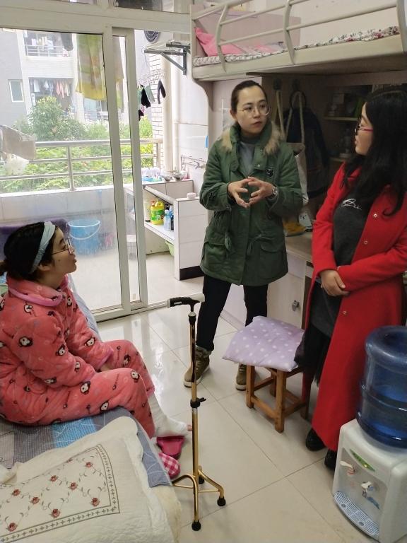 走访中,黄书记带领辅导员们特意看望了2015级一名受伤同学,关心其身体恢复情况,并叮嘱其平时要注意安全,有任何困难都要告诉辅导员,学院会尽量帮忙解决。