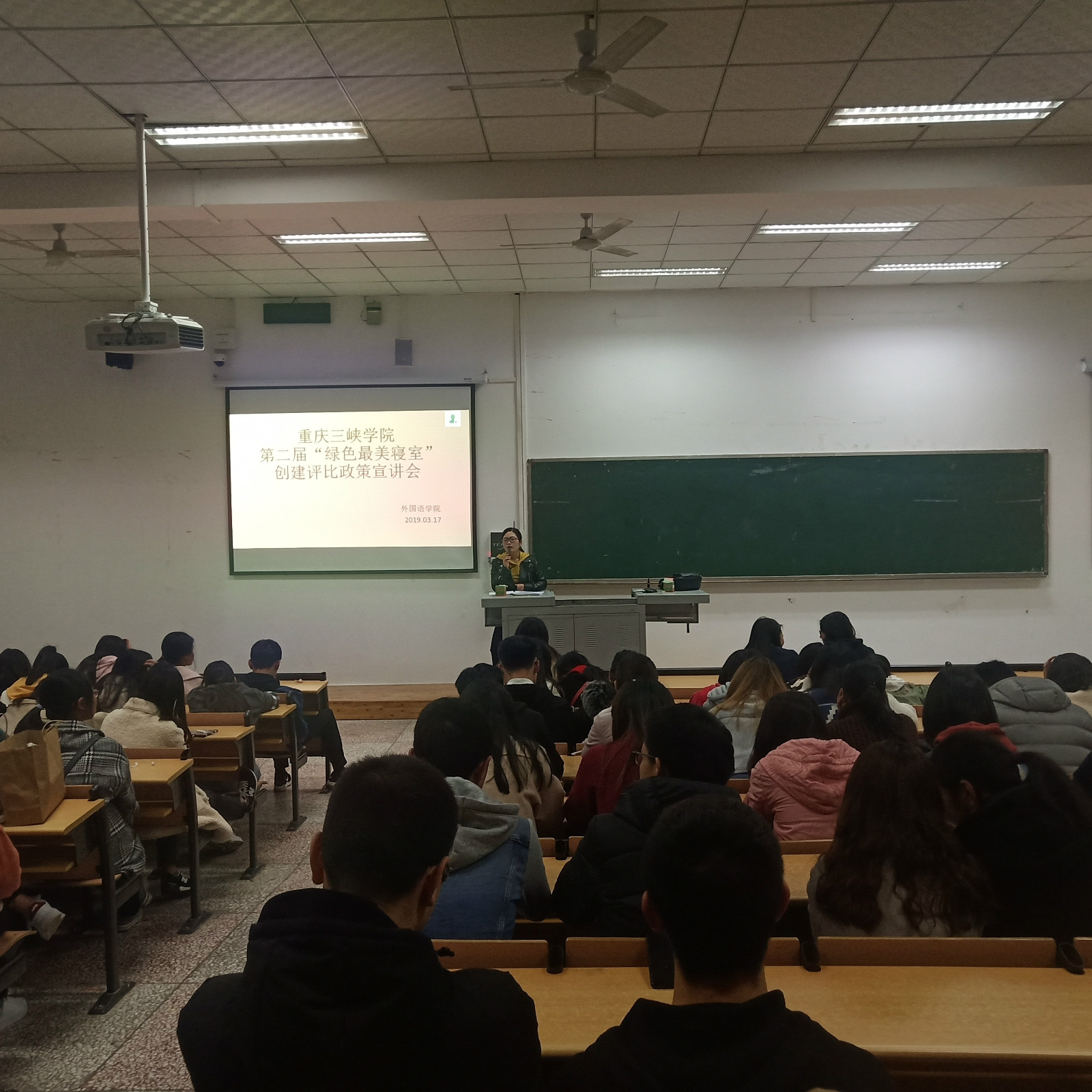 为进一步深化绿色德育美育,推动学生寝室文明建设,引领全体学生为学校“六个校园”建设贡献力量,3月17日,必赢242网址开展了“绿色最美寝室”创建评比政策宣讲会,会议由辅导员任红营老师主持。
