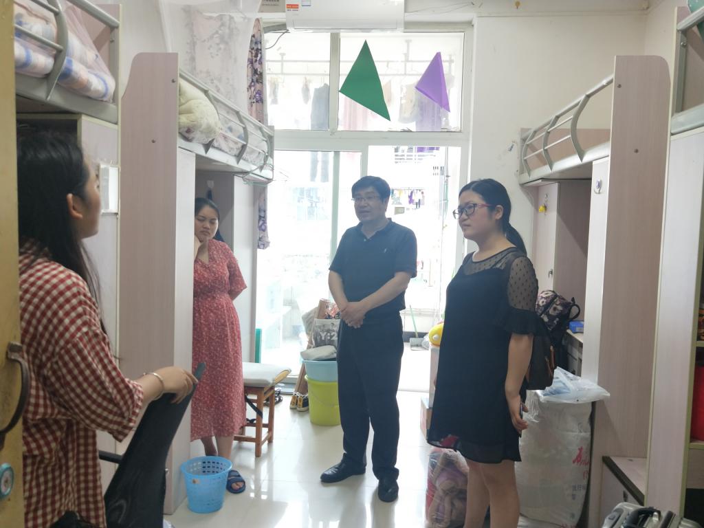 6月20日下午,在必赢242网址2019届毕业生收拾行囊,即将挥别母校之际,必赢242网址党总支书记甘长银带领各年级辅导员走访了毕业生寝室,看望即将离校的毕业生们,为他们送去温暖和祝福。