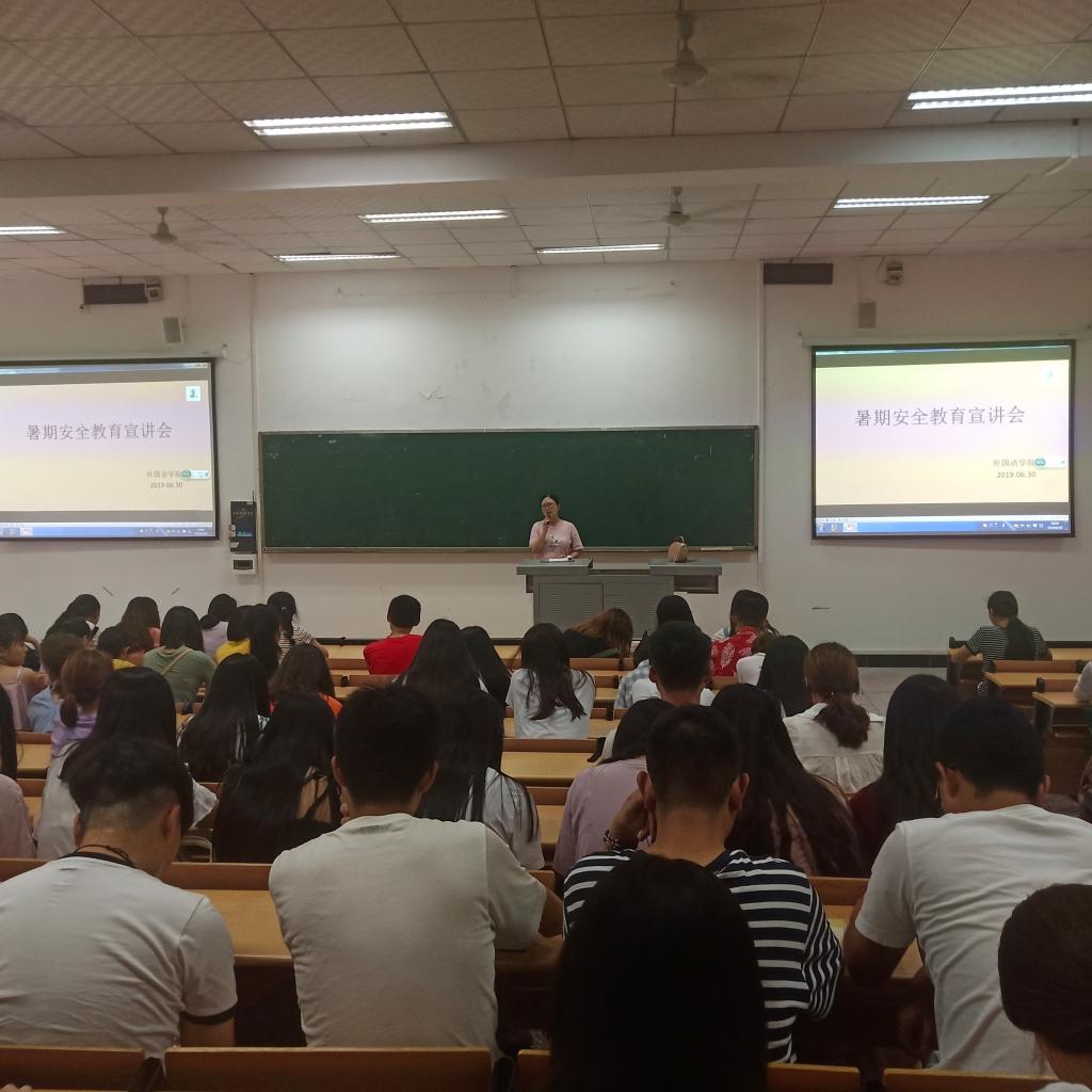 会上,任老师叮嘱同学们最后的两门考试要好好备考,不要懈怠,严格遵守考风考纪;关于暑假带薪实习,她向同学们进行了解释和说明,并希望大家暑假社会实践要注意安全,注意审核单位的资质,以防误入传销组织;随后,任老师重点从离校安全、交通安全、食品安全、网络安全、防溺水等方面进行强调,并作出以下具体要求:离校前务必关好门窗,切断水电的开关,贵重物品最好随身携带;旅途中不要乘坐黑车,注意保管自己的行李物品;暑假不要下河、江游泳,以防溺水等。会上,全体同学签署了《暑期安全注意事项承诺书》。