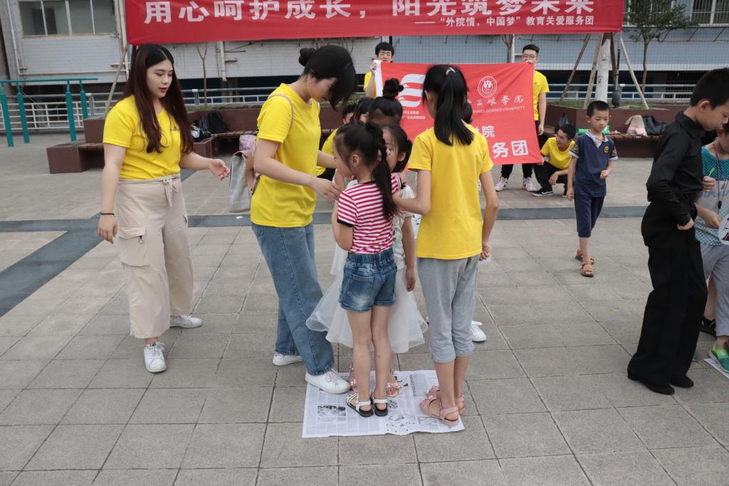 为深入贯彻精准扶贫政策,加强对农村留守儿童身心健康的关注,做好对留守儿童心理健康的引导。必赢242网址“外院情,中国梦”教育关爱服务团于7月11日上午在龙驹镇中心广场展开了一场特别的心理团辅活动,旨在让孩子们在活动中认识自我、发展自我。
