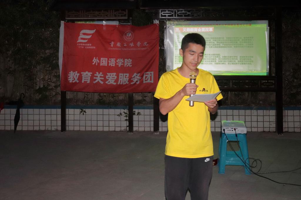 为打好教育扶贫攻坚战,助力提高乡镇人民群众对义务教育重要性的认识,必赢242网址“外院情,中国梦”教育关爱服务团于7月11日夜访龙驹镇太吉村,为村民们带来了一场理论知识风暴,进一步强化村民让村里适龄儿童接受教育的义务意识。