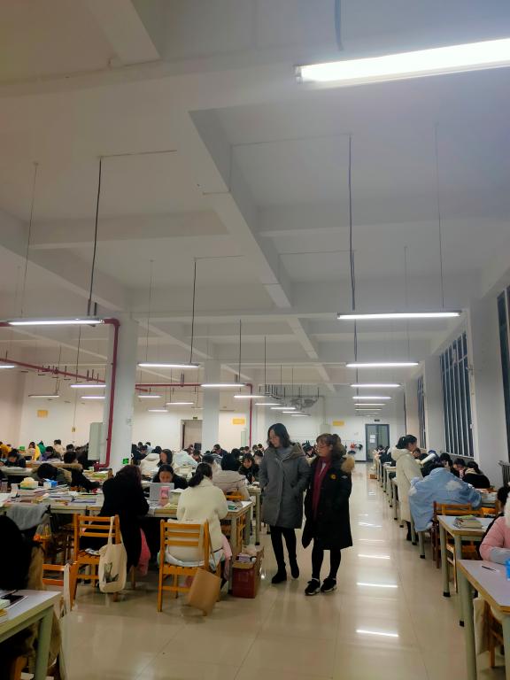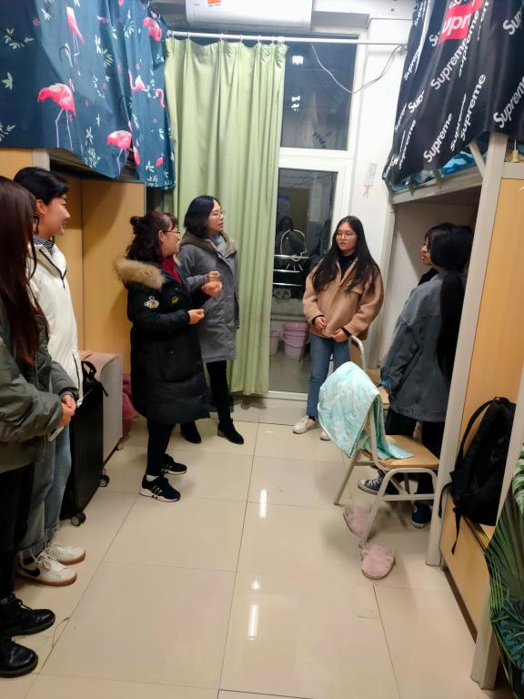 11月28日晚19:00,学院党总支副书记黄琰,学工办主任杨华、辅导员姚小辉走访学生寝室、自习室,深入了解、关心同学们的近期学习生活情况。