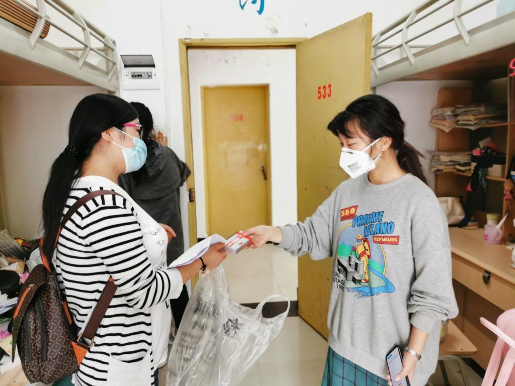 此外,学工人员还为返校学生送去口罩、温度计等防护物资。