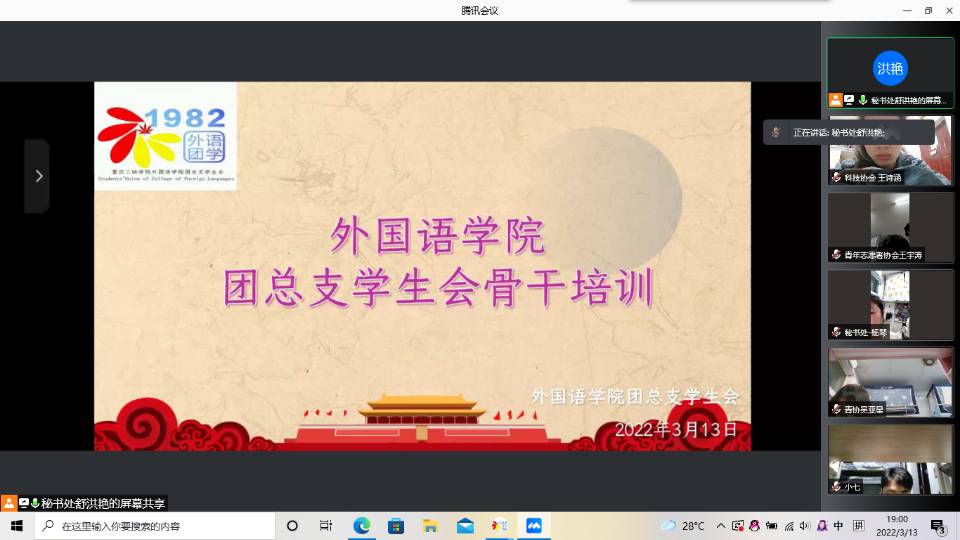 为深学笃用习近平新时代中国特色社会主义思想,进一步提高学生骨干、学生会工作人员的党性修养、服务意识和实践水平,必赢242网址团总支学生会于3月13日19:00举行了学生骨干线上培训会,必赢242网址全体学生骨干及部门负责人参加本次会议。