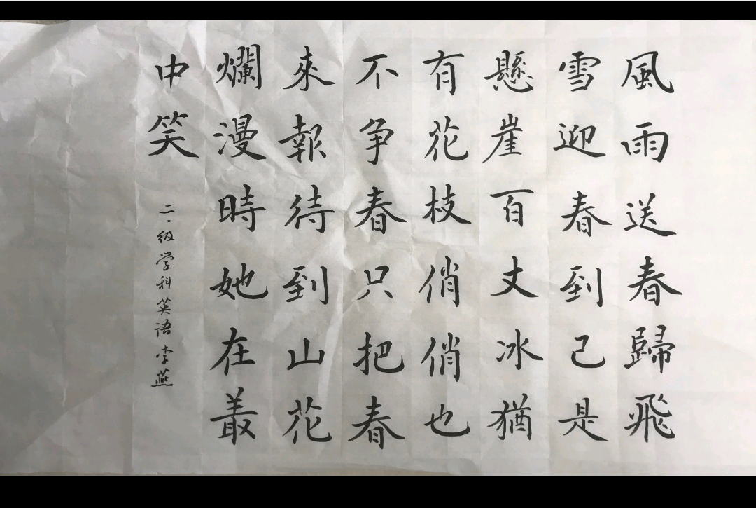 本次比赛以“畅游墨海,书写新章”为主题,参赛选手通过提交钢笔、毛笔以及粉笔书写作品的方式举行。全院学生积极参赛,收到三个参赛类别作品共计120余份。经过评比,张琳茹、马瑞等3名同学获得一等奖,陈诗佳、吴高洁等8名同学获得二等奖,刘小林、张紫云等10名同学获得三等奖。