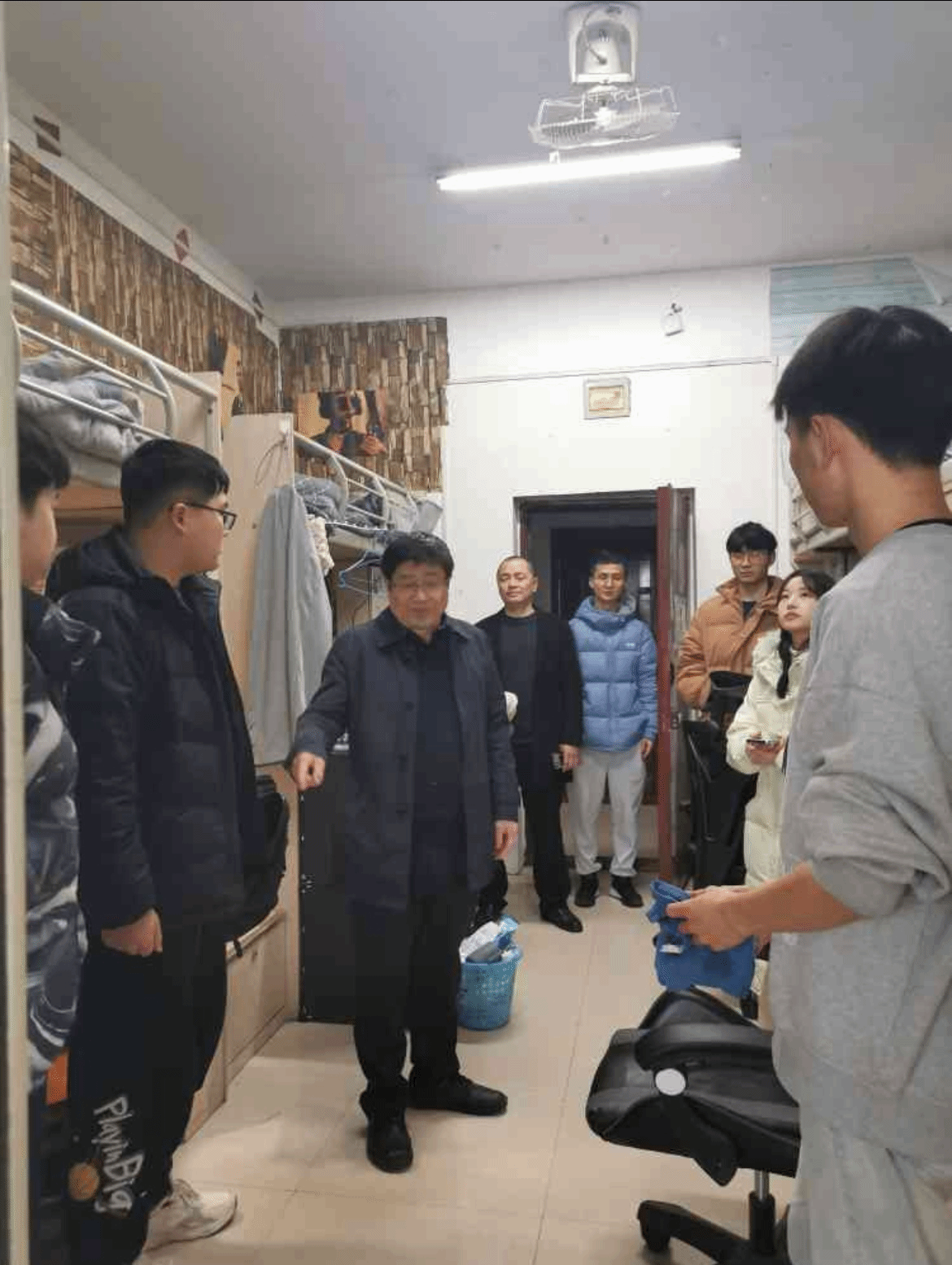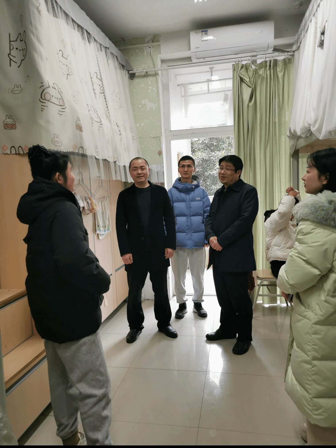 在走访中,甘书记与同学们进行亲切交流,了解同学们近期学习、生活与思想状况,提醒同学们注意自己的人身安全、财产安全,预防电信诈骗,时刻提高警惕。同时对同学们提出期望:希望同学们养成良好的学习生活习惯、合理安排自己的学习时间,共同营造和谐安全的寝室学习生活环境;同学们认真做好学习规划、职业生涯规划,以更加饱满的斗志迎接挑战、积极进取、踏实学习。