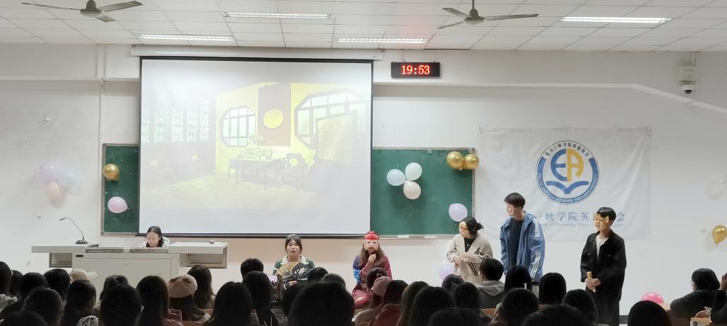英语协会会长黄罗秋同学介绍了我院英语协会发展历程与职责,进一步加深了会员对英协的了解。学生骨干陈亭宇对过去一学年英语协会的工作作了总结,并向会员们展示了下一阶段的工作安排,相信同学们能够在学术交流、文化传播中提升自己的英语口语表达能力。英语协会各部门会员代表表演了英文配音《生活大爆炸之你画我猜》、吉他弹唱《give me your forever 》、舞蹈《spicy》……等英语节目,展现了英协会员良好的语言综合运用能力。