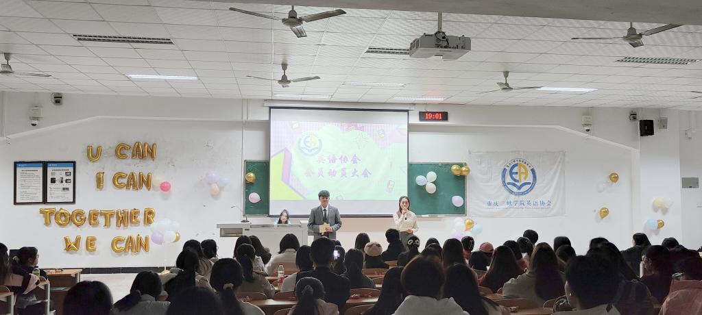 11月11日19:00,英语协会在明辨楼2栋204举办本学期会员大会,英语协会100余名会员参加。