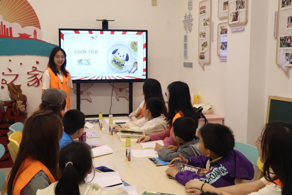 本次课堂主题为“Understanding Labor Day”。志愿者通过微情景剧向社区小朋友们介绍了五一国际劳动节的由来。志愿者围绕劳动节,教授了小朋友“worker”“labour”“”product”等英语单词,小朋友们也积极分享了自己在家参与劳动的有趣经历。最后大家一起学唱了英文歌“Housework”。
