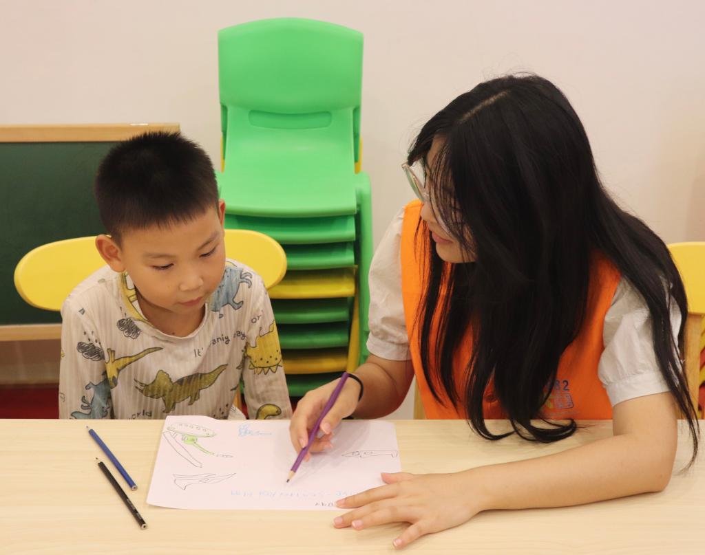 最后,志愿者为小朋友们进行一对一作业辅导。
