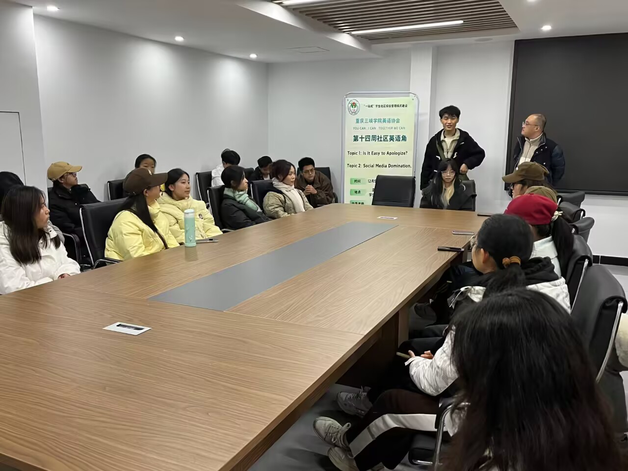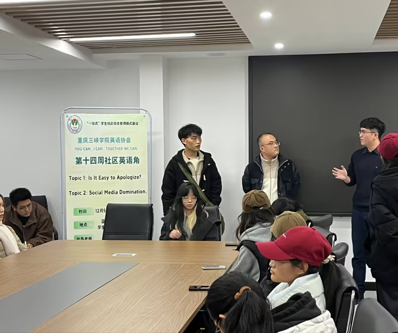 本次英语角围绕“Is It Easy to Apologize?”“Social Media Domination”两个议题展开。同学们就道歉的时机、方式和诚意,以及当今社交媒介的使用情况进行深入探讨,得出了人际交往的正确模式。活动过程中,老师们在一旁认真倾听同学们的发言,并分享了自己的观点和看法。最后,本次英语角在“English Word Chain”和“What Time Is It”两个小游戏中结束,同学们在欢声笑语中度过了一段愉快的时光。