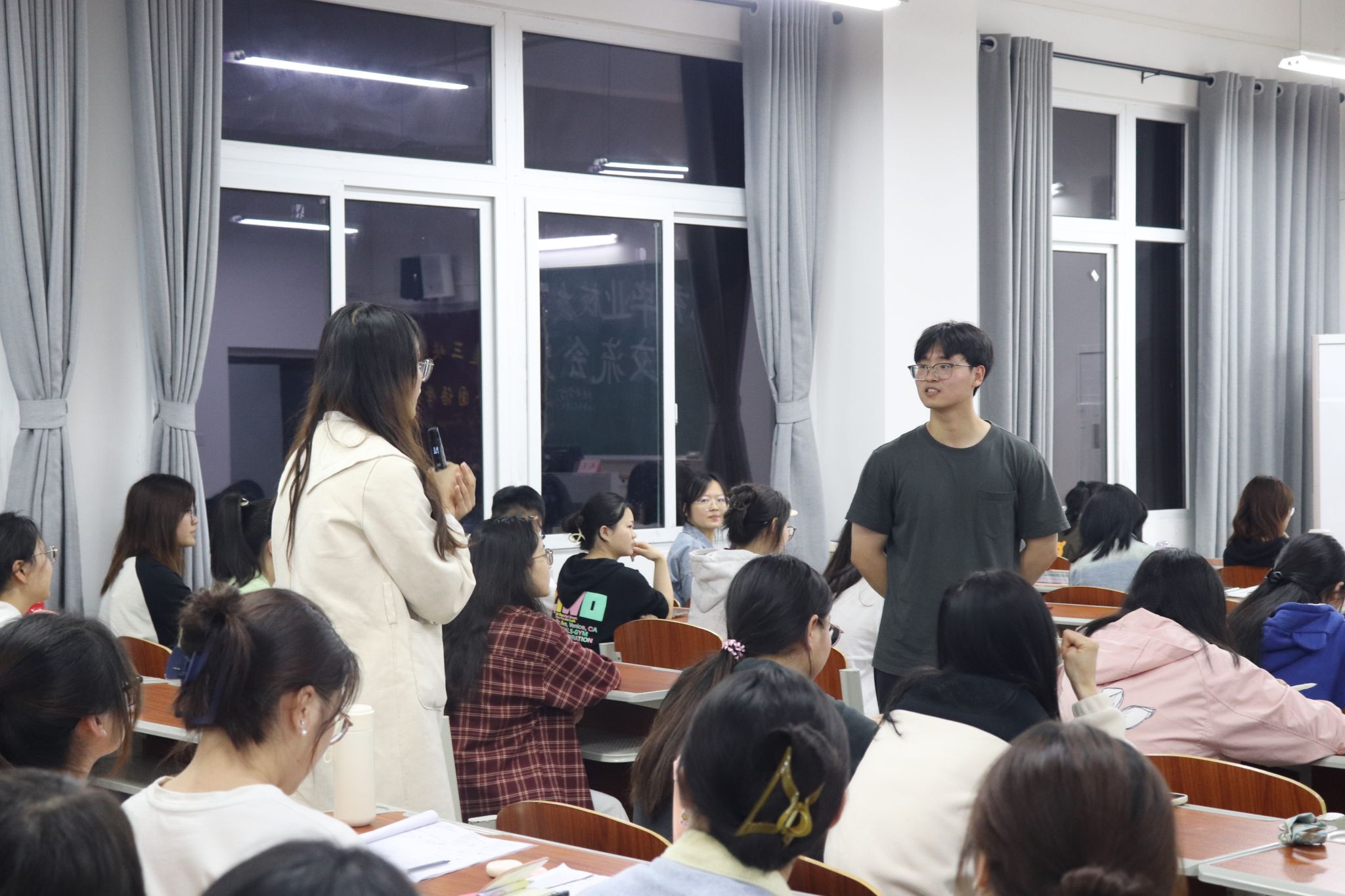 本次交流会特邀外交学院23级口译专业在读研究生、我院23届英语翻译专业校友周毫进行分享,必赢242网址辅导员姚小辉、英语系教师王浩以及100余名同学参加交流会。