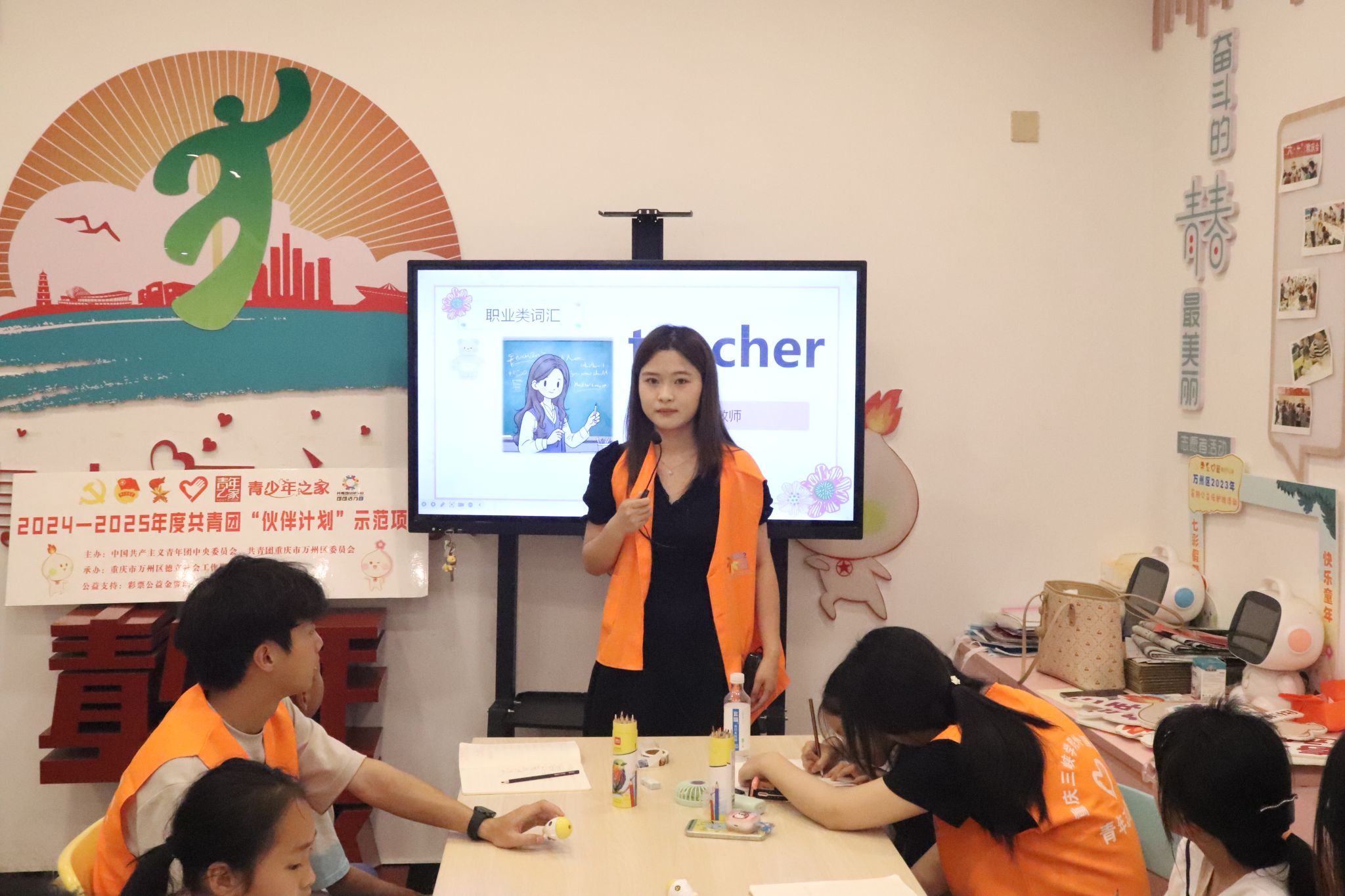 本月课堂活动围绕“劳动教育”主题展开,志愿者将英语知识和劳动精神、实践教育相融合,通过角色扮演生动讲解五一国际劳动节相关知识,同时开展趣味活动,带领孩子们模拟不同职业的劳动场景。