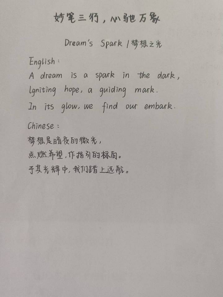 为丰富校园文化生活,激发学生外语学习热情,提升艺术审美与跨文化表达能力,242nte官网英语协会于2025年4月21日至27日举办“妙笔三行,心驰万象”英文三行诗写作大赛。
