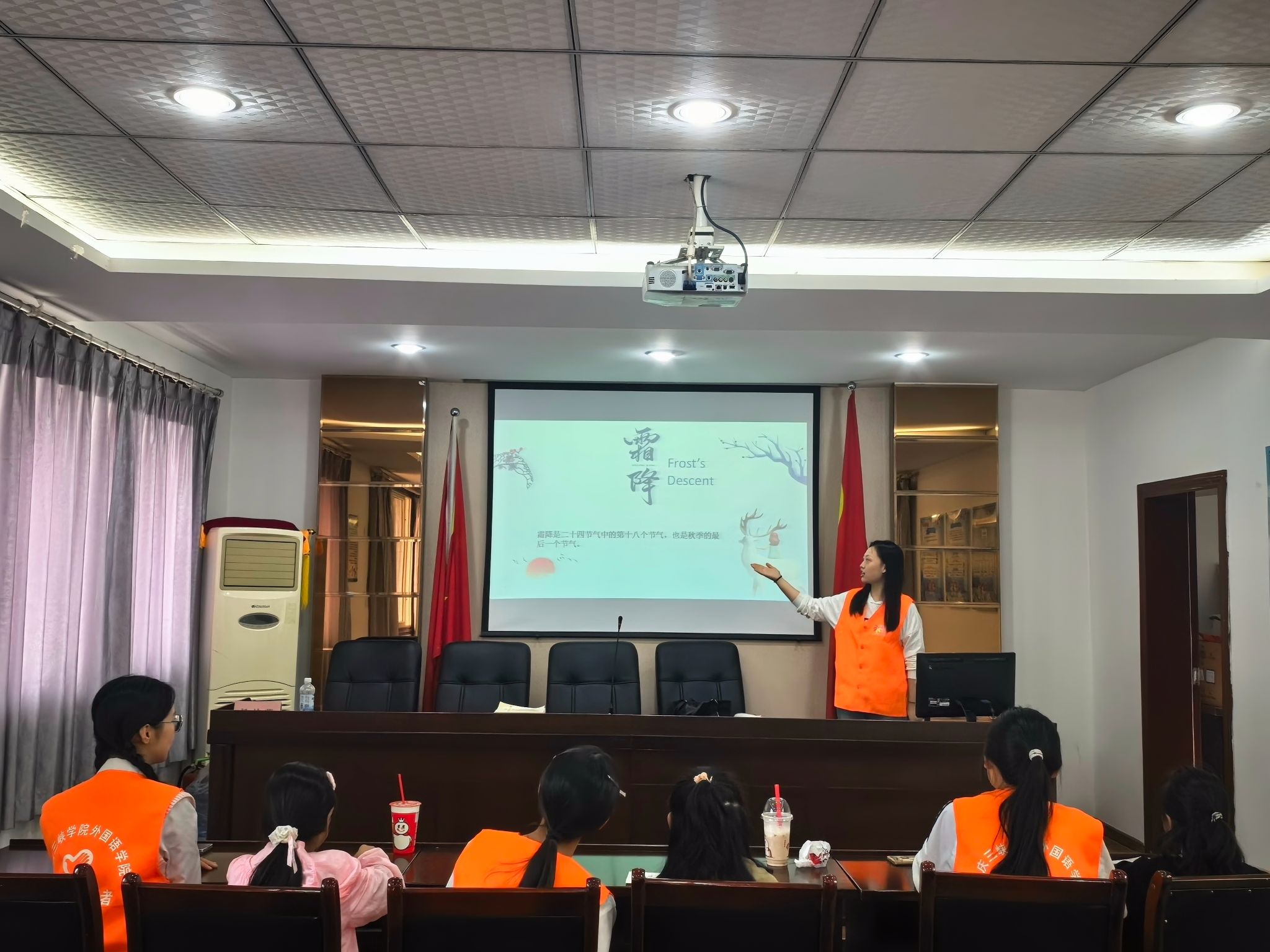10月18日,必赢242网址青年志愿者协会走进石峰社区、尖峰岭社区,开展以寒露、霜降节气为主题的英语志愿课堂,助力小朋友在英语学习中领略中华传统文化魅力。