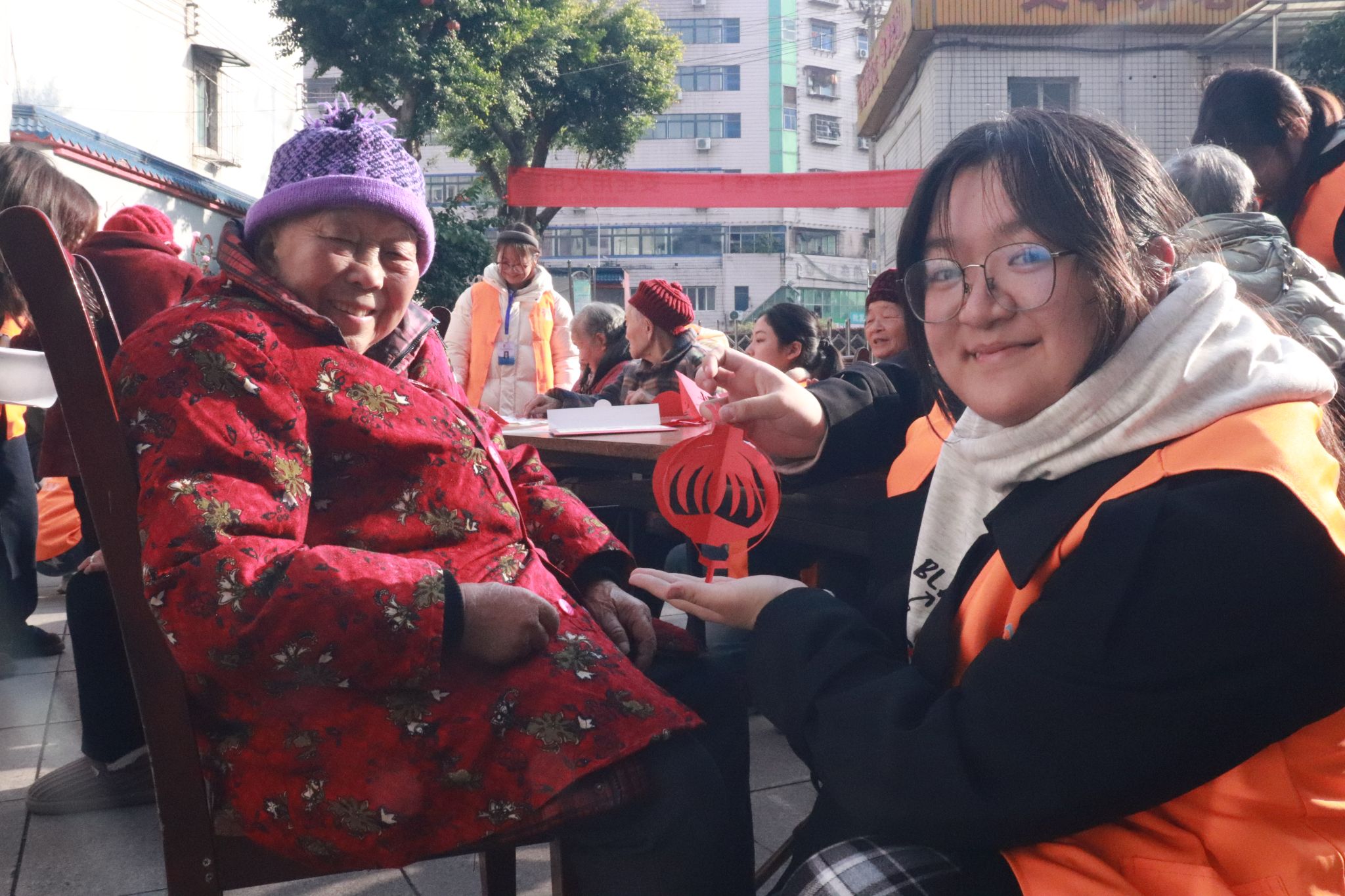 活动中,志愿者们与老人亲切交流,关心他们的身体和生活状况,并贴心提醒冬季防寒与饮食注意事项。志愿者还表演了防诈骗情景短剧,以生动形式揭露常见诈骗手法,增强老人们的防范意识。在轻松愉快的“拍拍操”环节,老人们积极参与,活络筋骨,现场笑声不断。此外,五子棋对决、剪纸等活动也深受欢迎,暖意融融。