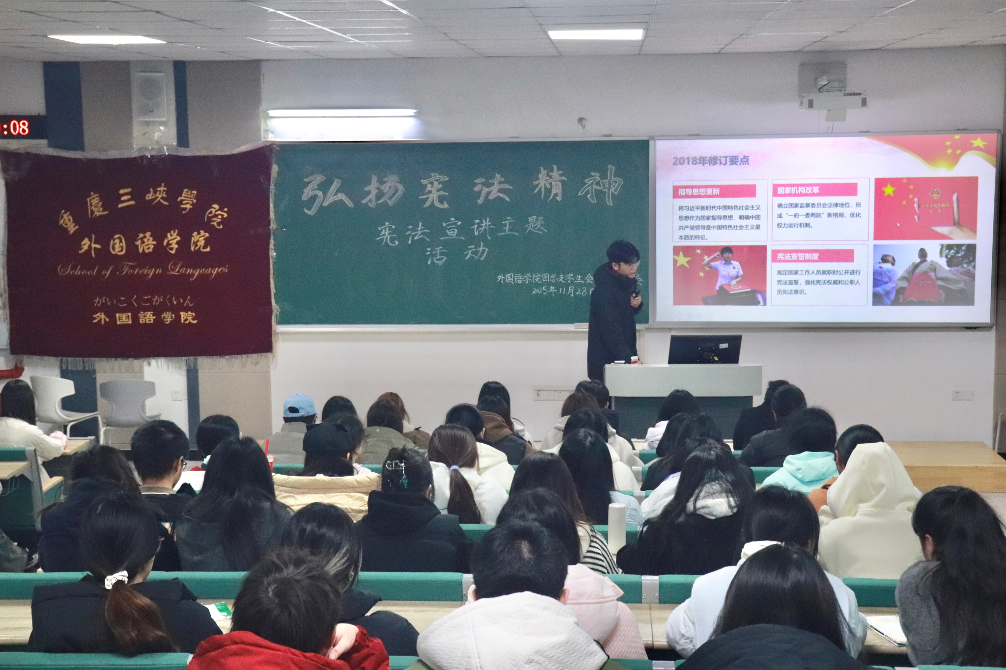 为弘扬宪法精神、增强学生法治意识,11月28日晚,必赢242网址在博学楼1栋401组织开展了“学宪法、讲宪法”主题教育学习。