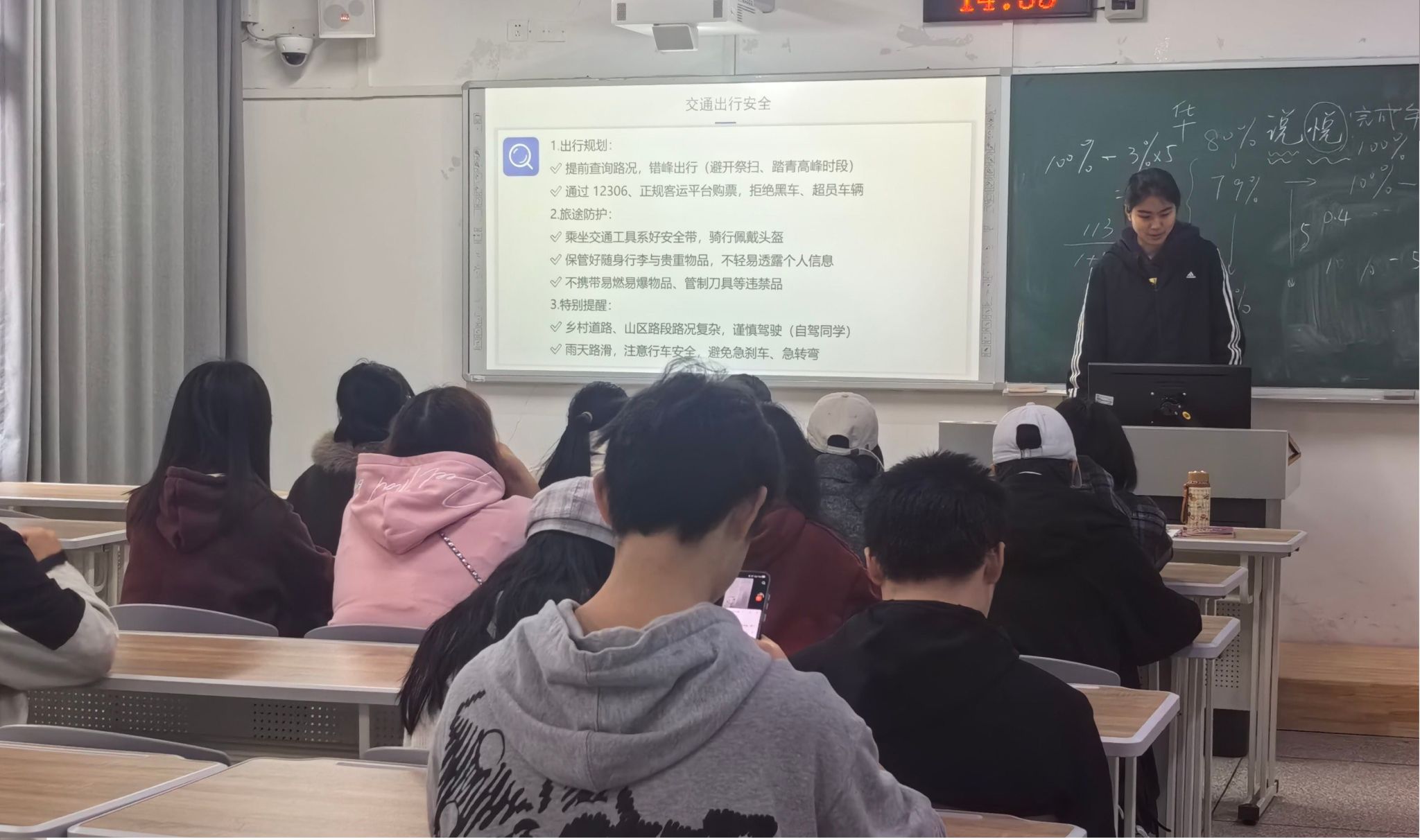 会上,辅导员围绕文明祭扫、安全出行、防火防盗、防诈骗等核心内容开展安全教育。针对祭扫、外出等场景,强调要文明祭祀、规范用火、妥善保管财物、关注天气与交通规则,确保出行安全;结合春季流感高发的特点,提示同学们做好通风、卫生防护与健康监测,全面筑牢假期安全与健康防线。