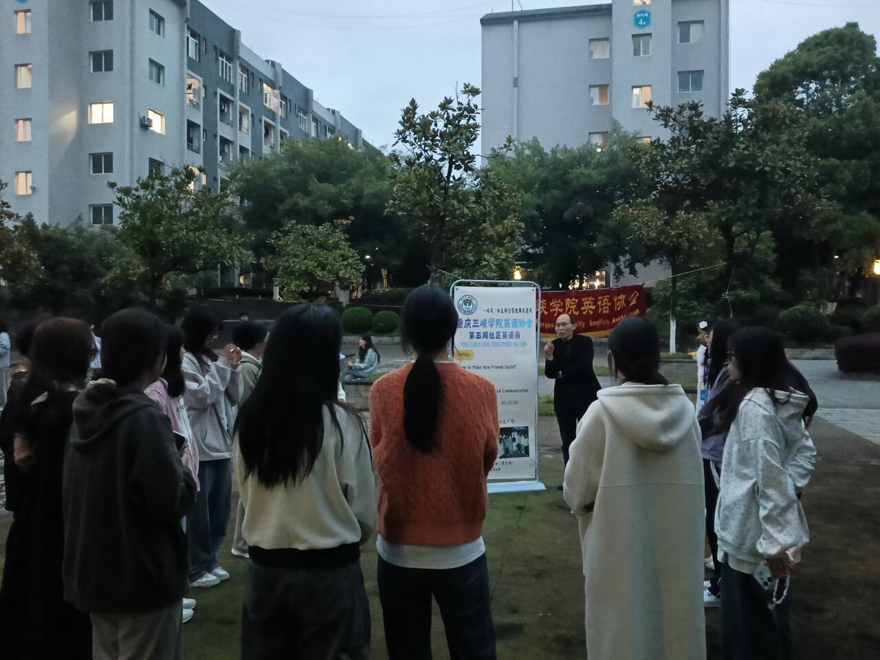 4月2日晚,我校英语协会在百安校区榕叶苑学生广场举办了本学期第五周英语角活动。必赢242网址老师梁福江到现场指导。