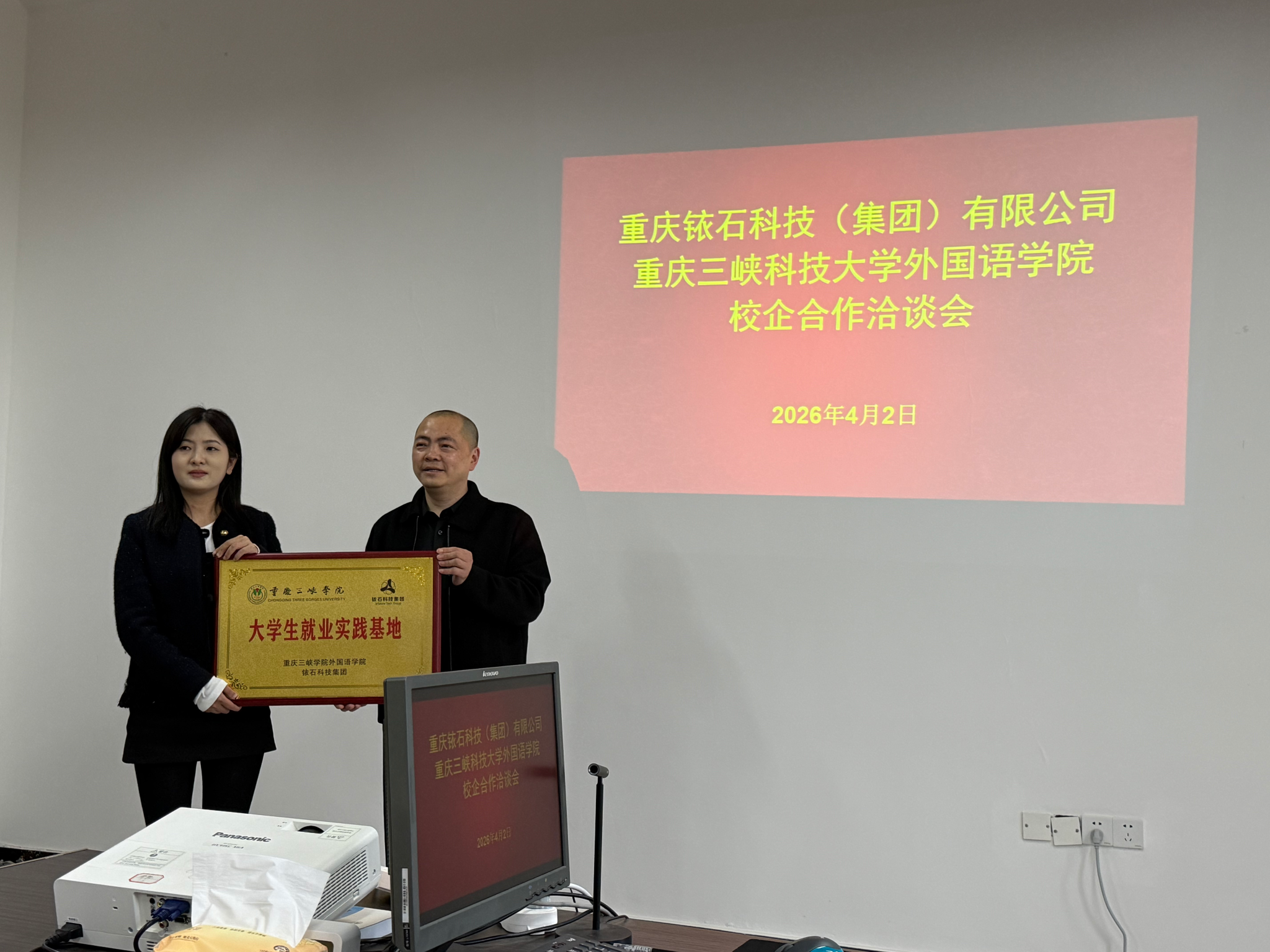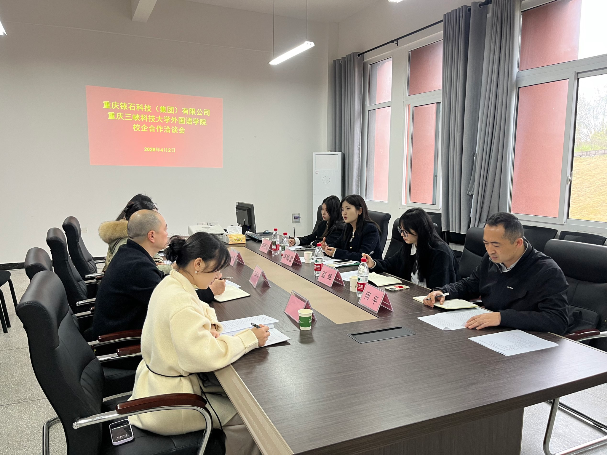 重庆铱石集团副总裁助理赵烨、副总监何平、新媒体主管李佳瑶,我院教师张雪、陈可昕参会。