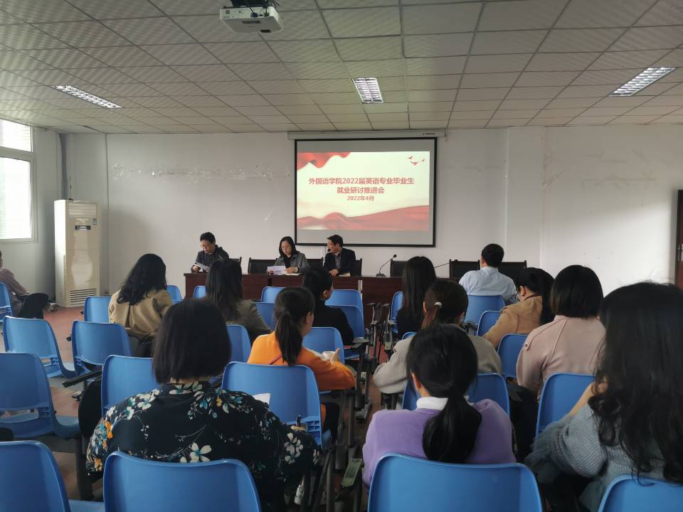 4月15日,学院在明辨楼1教604召开就业研讨推进会,英语系全体教师参加会议,会议由学院党总支书记甘长银主持。