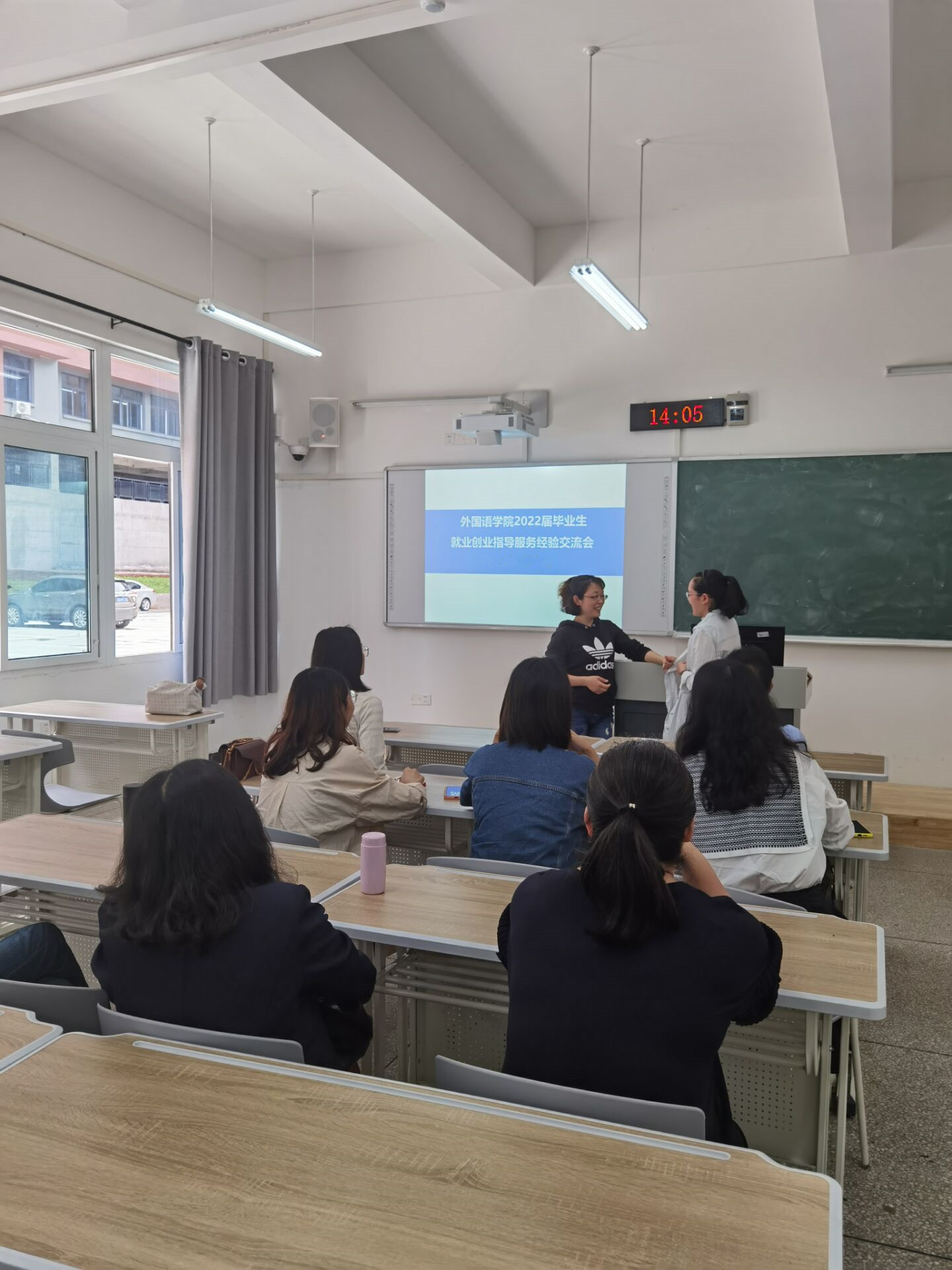 现场经验交流采用情景模拟的方式进行。辅导员向明霞扮演“慢就业”、“不就业”、选择困惑、目标不清晰等就业困难毕业生,大四辅导员杨华针对以上学生思想困惑开展针对性思想政治工作,给专业教师们展示了如何应对处理毕业生就业指导帮扶工作中存在的各种难题,有效提升了全院教师的就业指导服务能力,进一步营造了全院参与就业的良好氛围。