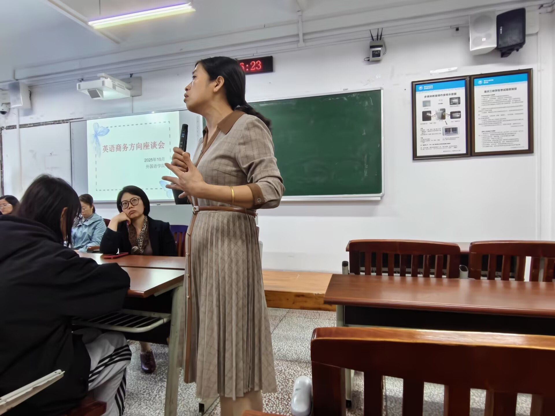 老师们强调“夯实专业基础为核心”,建议从三方面提升学习效能:课前预习结合课后巩固,善用线上资源与AI工具辅助学习;主动参与师生互动,及时解决疑难问题;熟悉课程体系差异,低年级筑牢语言功底,高年级聚焦专业深化拓展。