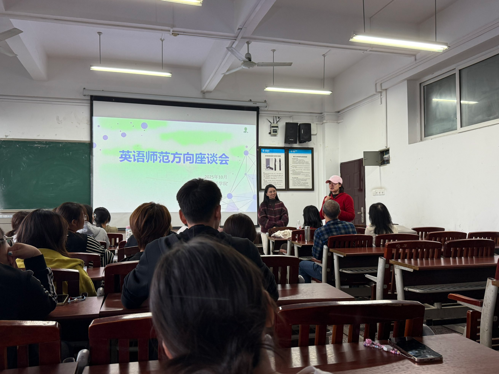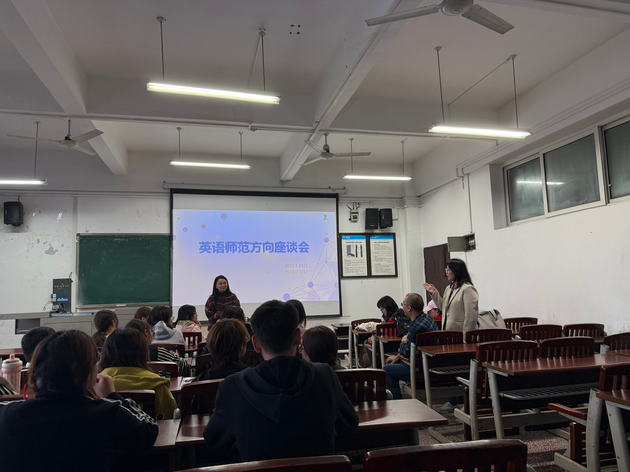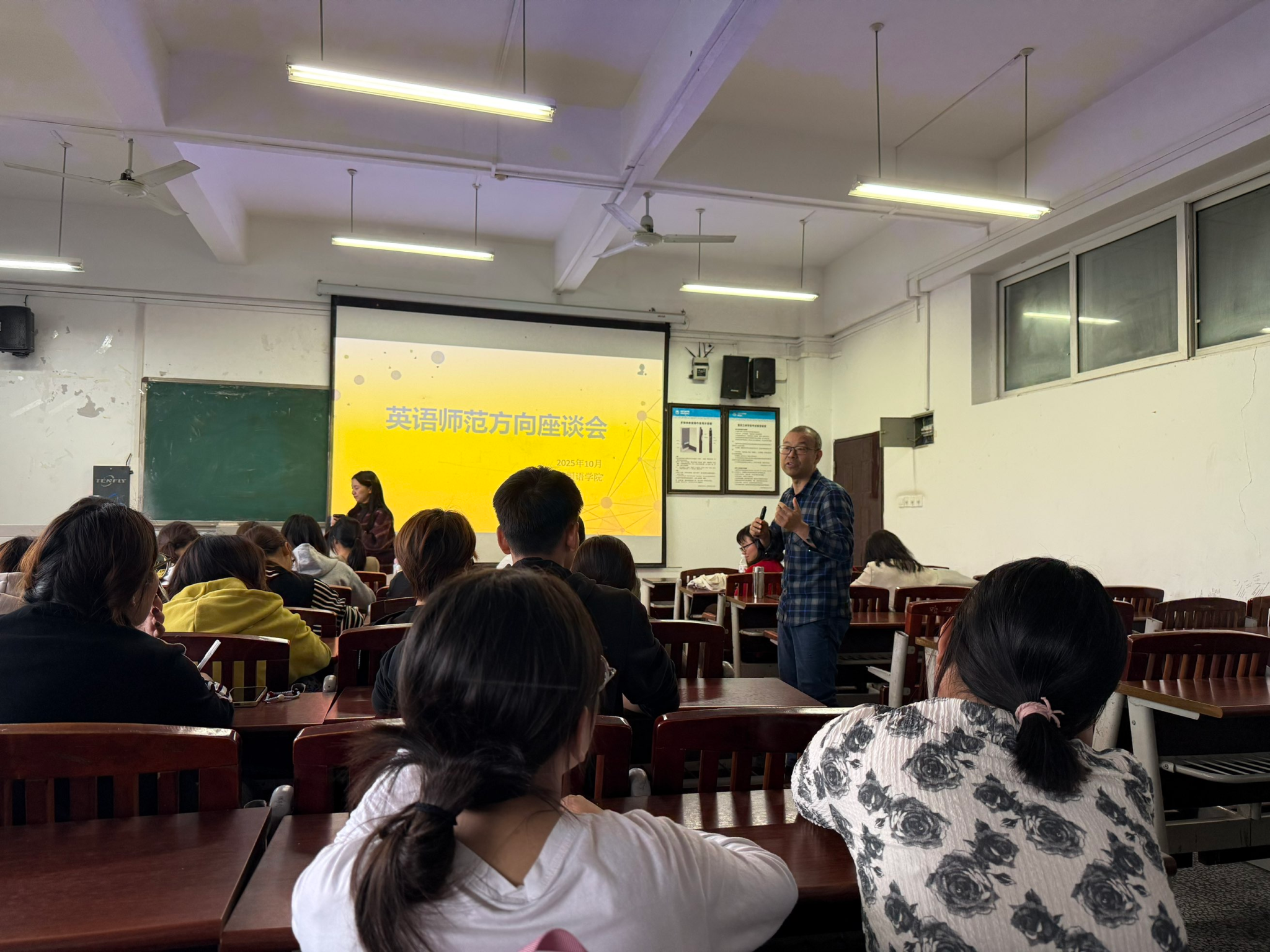 2025年10月30日,必赢242网址于明辨楼1栋403举行英语师范专业学生座谈会。座谈会由刘先林老师主持,刘娜、戴倩倩、金良友、覃靓等任课教师出席,与来自25级、24级、23级三个年级的学生代表进行了交流。