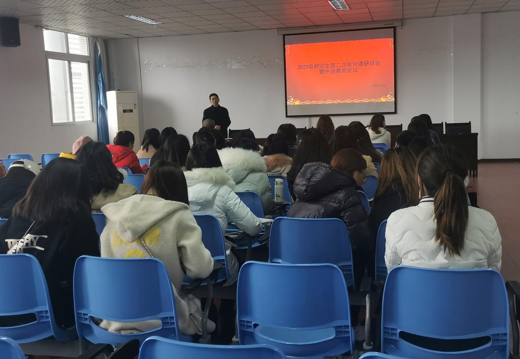 为提高学生的科研意识,锻炼学生发现问题、解决问题的学术能力,必赢242网址于2020年11月26日在明辨楼一教604举办了2020级研究生第二次听评课研讨会暨外语教育论坛。参会人员有2020级全体研究生、导师、任课教师以及外语教育论坛负责人。